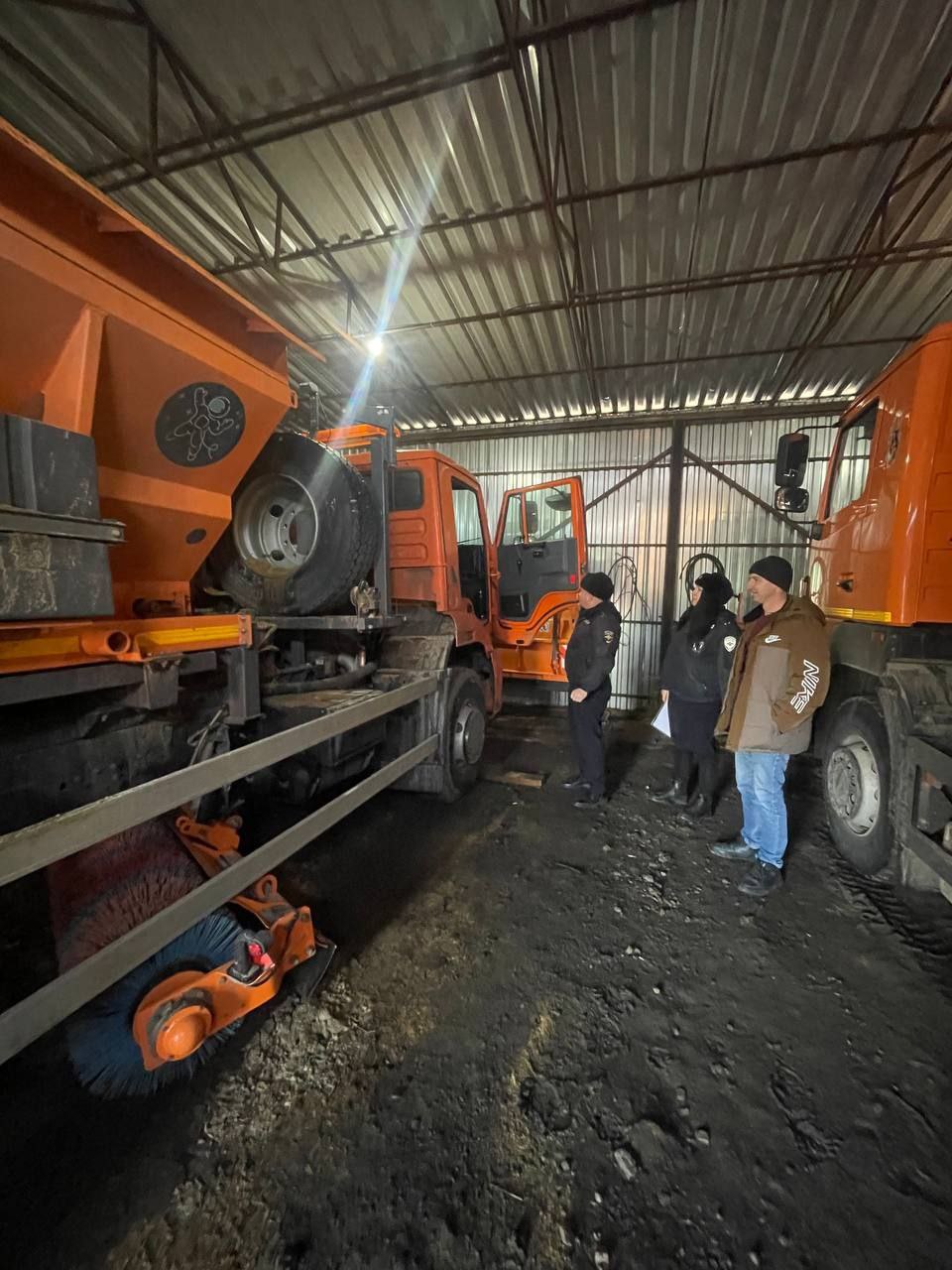 Дорожные полицейские осмотрели комбинированные дорожные машины, предназначенные для очистки проезжей части и распределения реагентов.