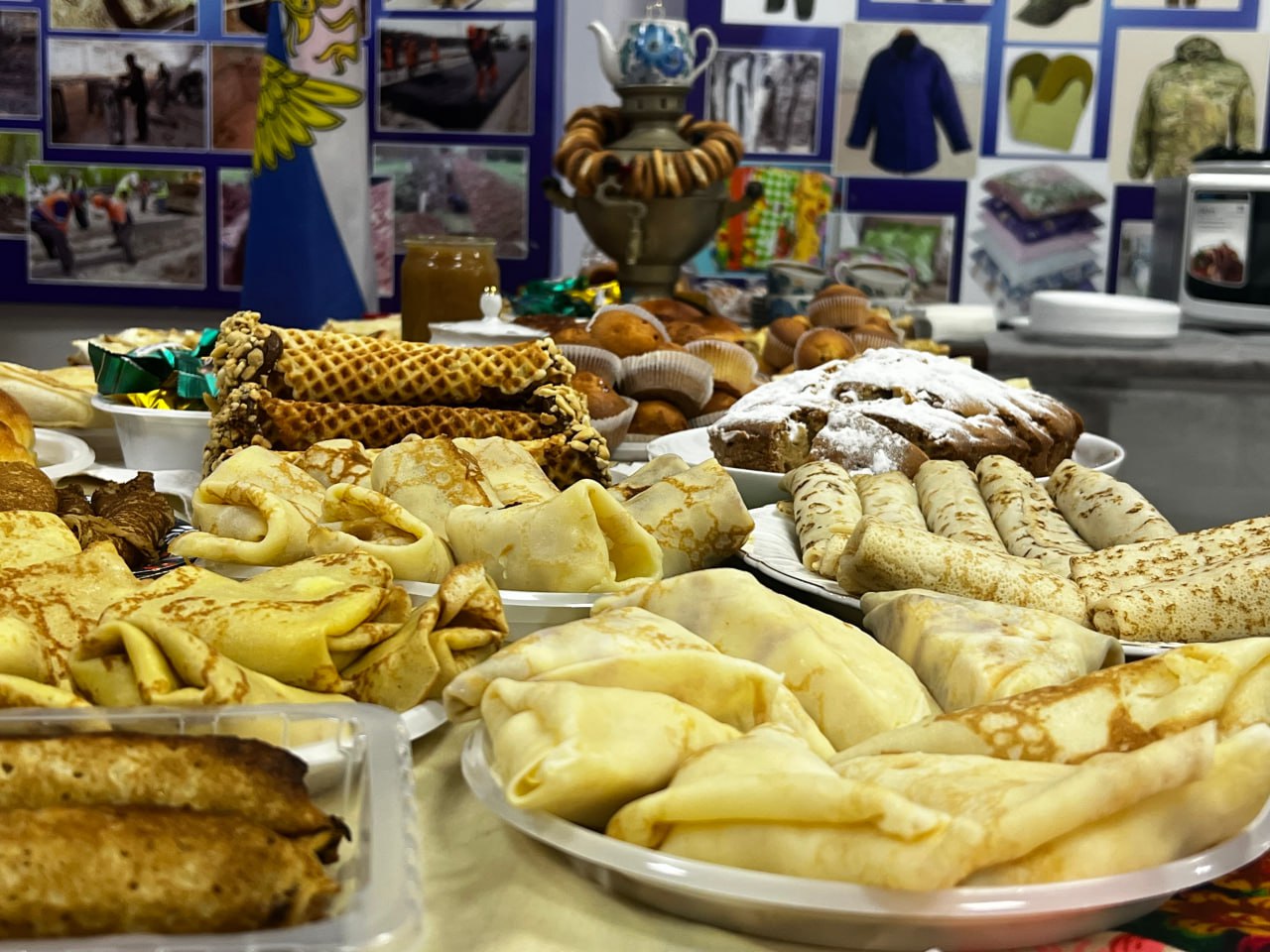 В обеденный перерыв они устроили праздничное чаепитие, которое превратилось в настоящий фестиваль кулинарного мастерства. Каждая женщина-коллега проявила фантазию, готовя самые разные виды блинов — с мясом, творогом, ягодами и фруктами. Атмосферу дополняли украшенные столы с традиционной посудой и народными аксессуарами, создавая ощущение домашнего уюта.