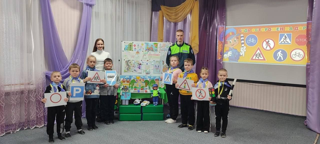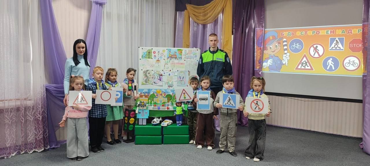 В игровой форме дошкольники изучали основы безопасного поведения на дороге, рассказывали сотруднику Госавтоинспекции о значении дорожных знаков. Особое внимание было уделено беседе о важности использования световозвращающих элементов на одежде и рюкзаках в темное время суток.