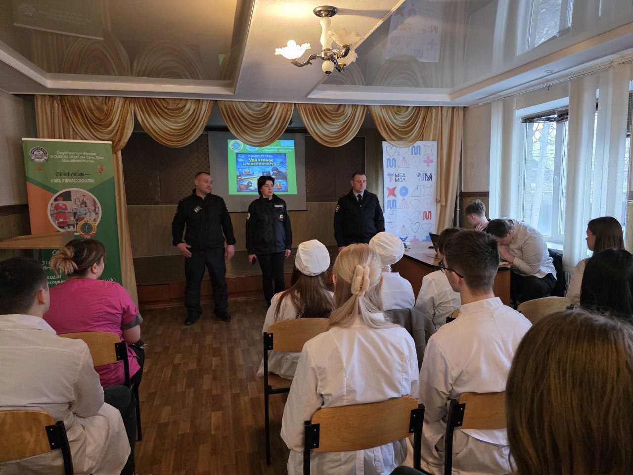 В преддверии весенних праздников сотрудники Госавтоинспекции посетили студентов пятого курса «Свердловского медицинского колледжа» с важной профилактической беседой о соблюдении Правил дорожного движения.