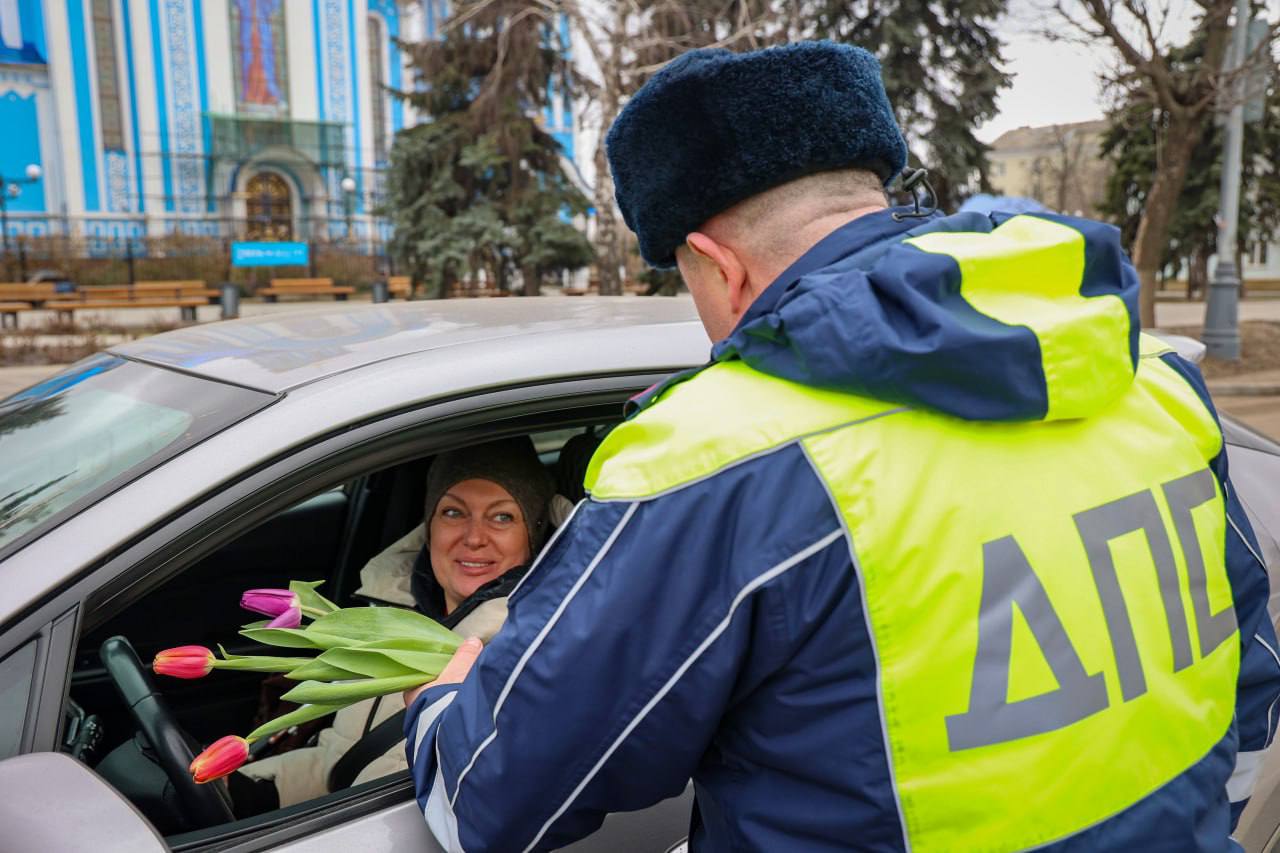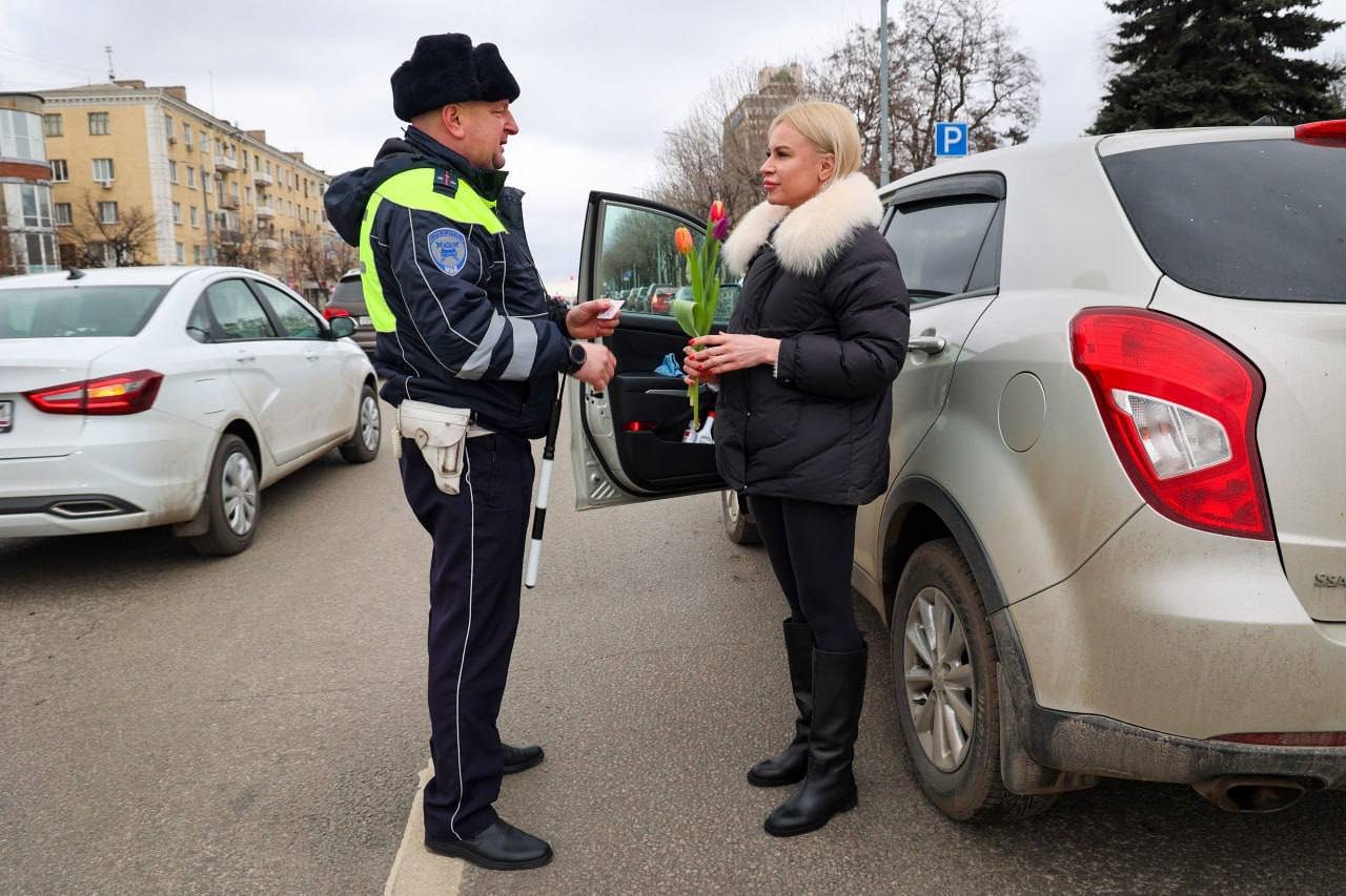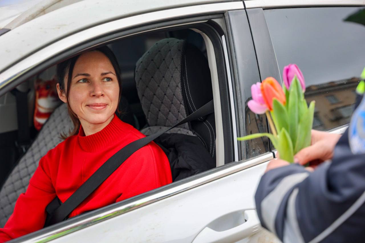 Накануне Международного женского дня 8 Марта госавтоинспекторы и общественники поздравили горожанок. Полицейские останавливали автомобили, за рулём которых находились представительницы прекрасной половины человечества, и вместе с общественниками дарили им цветы и самые искренние пожелания.