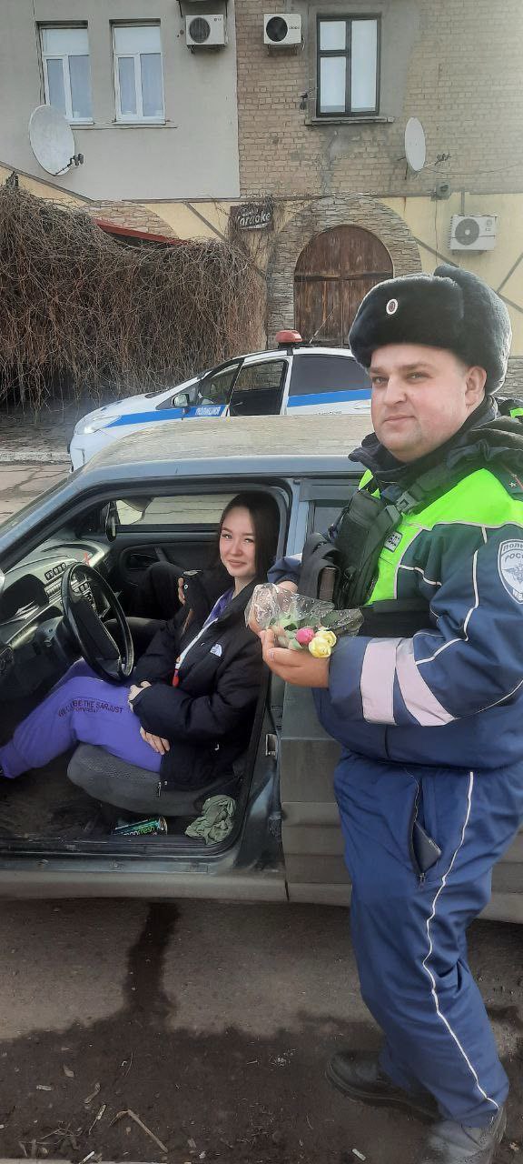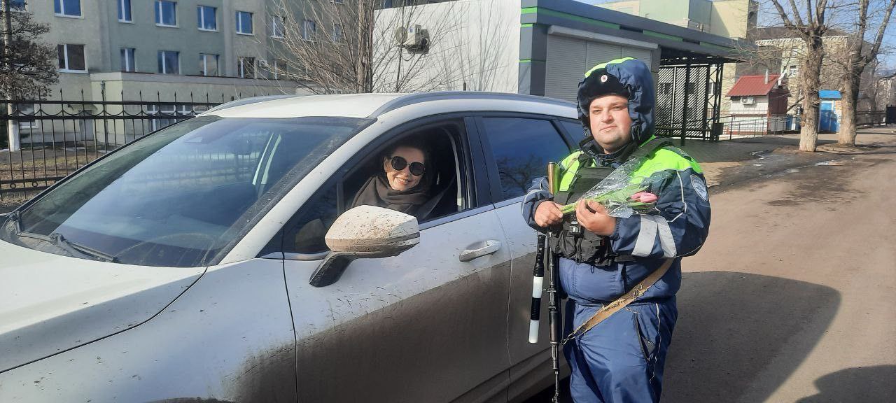 Но не забыли и о главном: вместе с букетами женщины получили полезные напоминания о соблюдении ПДД и пожелание безопасных дорог.