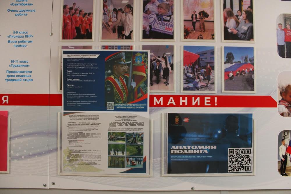 В мероприятиях также приняли участие сотрудники отделения по работе с личным составом линейного отдела. Для старшеклассников провели профориентационные беседы, в ходе которых будущие выпускники узнали о преимуществах обучения в ведомственных вузах системы МВД России, условиях поступления и перспективах трудоустройства. Ребятам рассказали о Луганском филиале Воронежского института МВД РФ и Белгородском юридическом институте МВД РФ имени И.Д. Путилина.