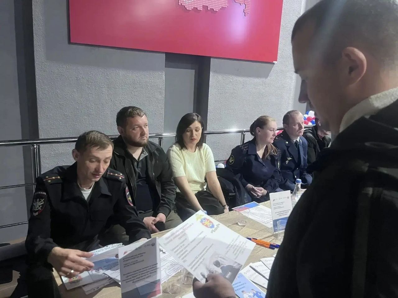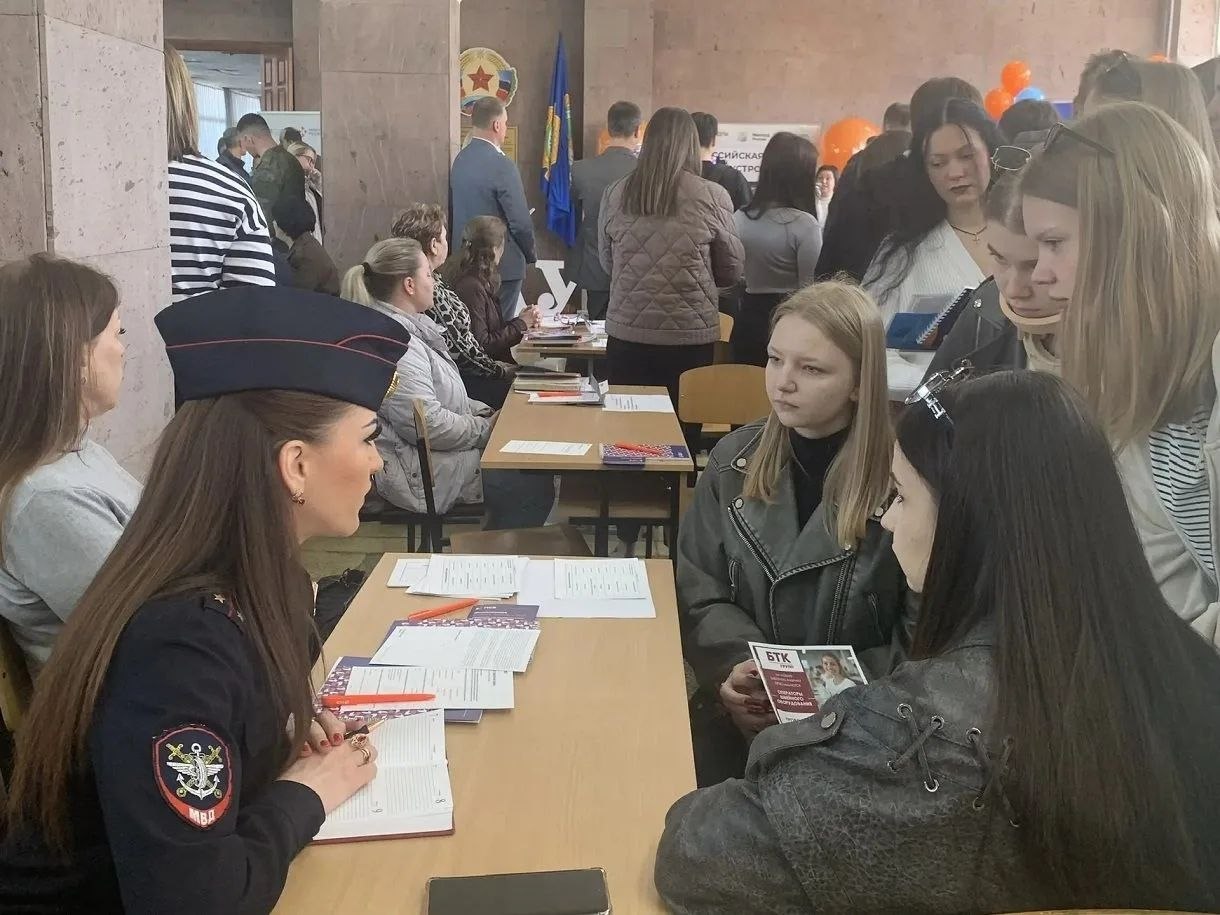 В рамках ярмарки работали дискуссионные площадки «Формула занятости» и фестиваль профессий «Будущее начинается сегодня» с мастер-классами для школьников, где рассказали о профессии полицейского. Все заинтересованные получили буклеты с условиями поступления в линейный отдел и контактами кадрового подразделения.