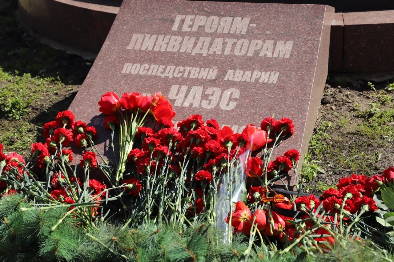 Участники митинга-реквиема почтили минутой молчания память погибших и возложили цветы к мемориалу «Героям-ликвидаторам последствий аварии на ЧАЭС».