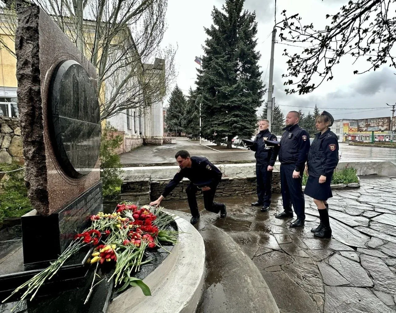 Перевальские полицейские возложили цветы к памятнику «Чернобыльский спас».