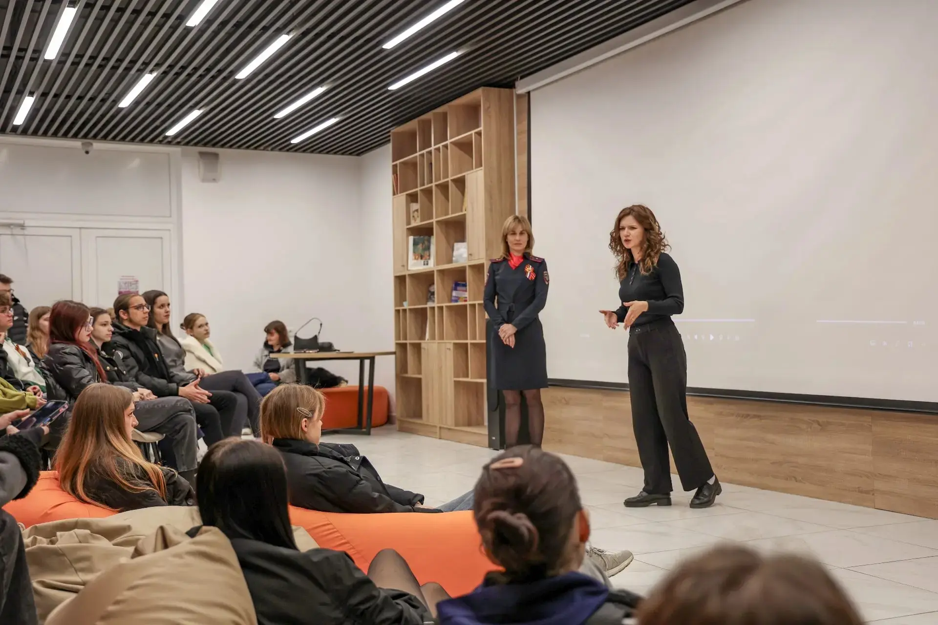 Встреча представителей правоохранительных органов со студентами состоялась в формате кинолаборатории. В рамках мероприятия участникам был продемонстрирован документальный фильм «Зазеркалье», подготовленный при участии Главного управления по контролю за оборотом наркотиков МВД России, наглядно иллюстрирующий риски наркопотребления и последствия участия в противоправной деятельности.