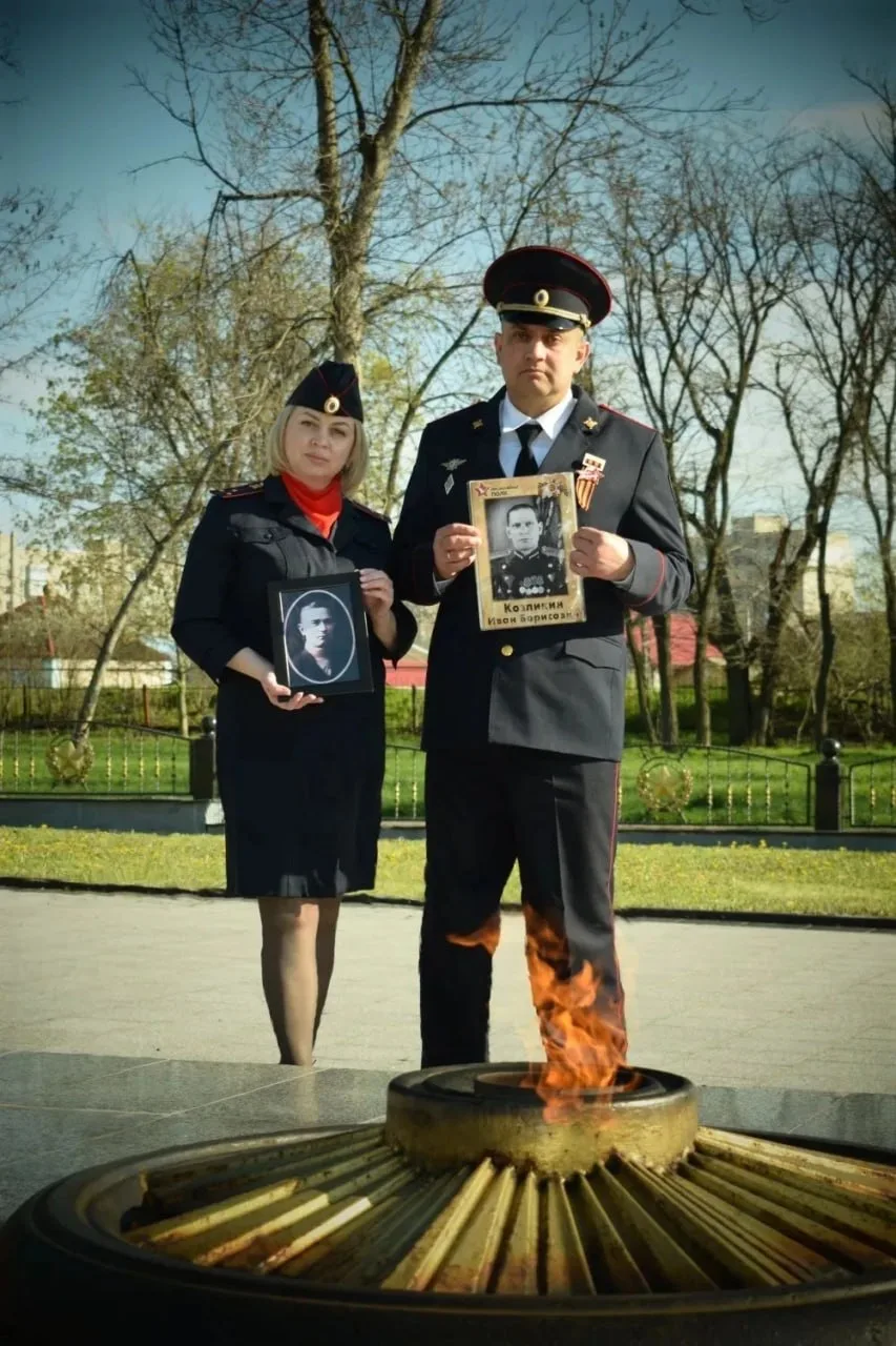 О своих родственниках, которые в годы Великой Отечественной войны воевали на фронтах, приближая нашу общую Победу, рассказывает супружеская пара правоохранителей из Отдела МВД России «Свердловский» – начальник ИВС майор полиции Сергей Козликин и инспектор группы по исполнению административного законодательства капитан полиции Анастасия Петренко.