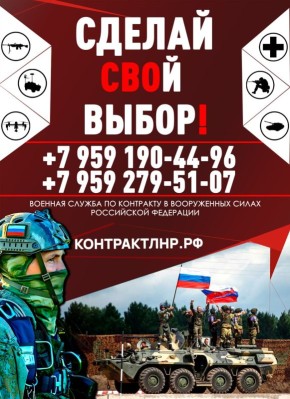 ПРЕИМУЩЕСТВОВозможность выбора специальности и места службыЛуганская Народная Республика единственный регион, который предоставляет выбор должности!Обучение и тренировки проводят инструкторы, имеющие реальный боевой опыт!ВАКАНСИИ:- оператор БПЛА;-...