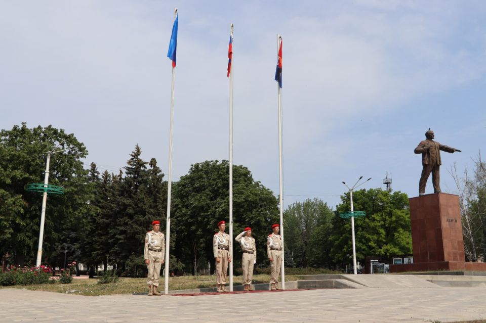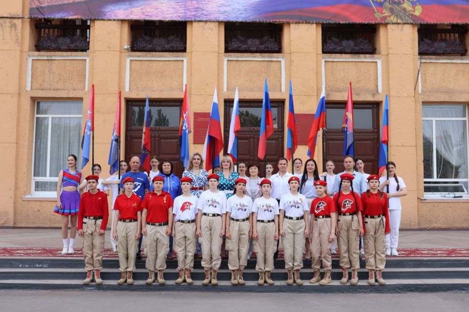 Мероприятие началось с торжественной церемонии поднятия Государственного флага Российской Федерации. Почетное право поднять флаг было предоставлено юнармейцам.