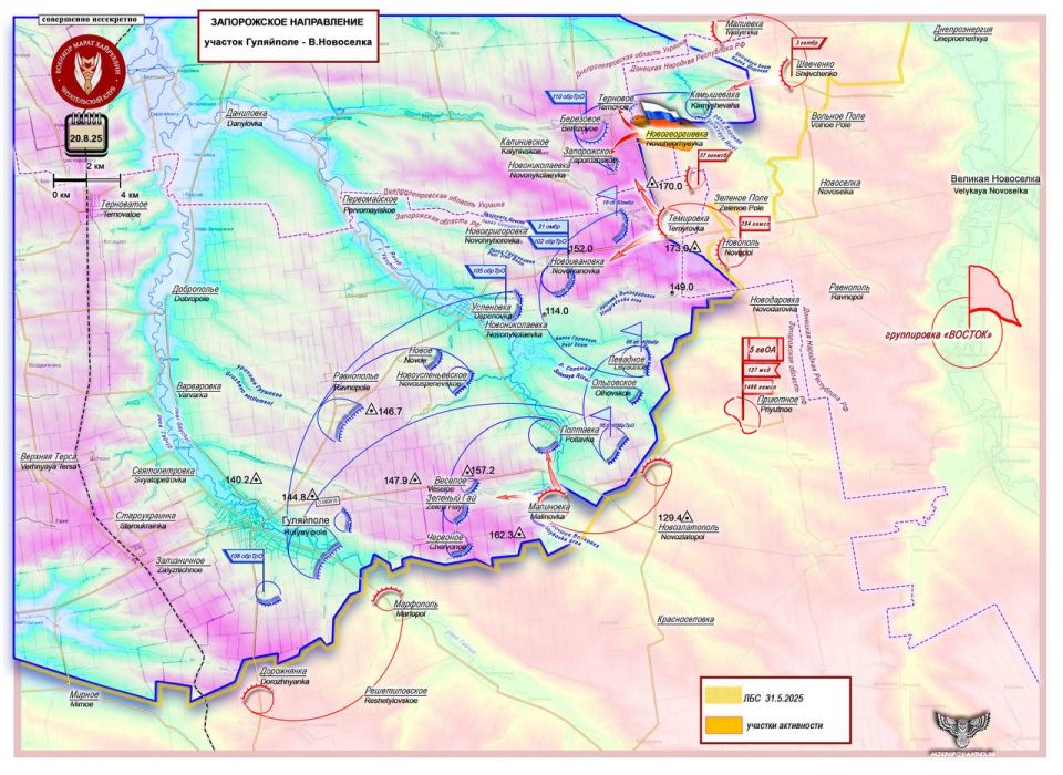 Армия России создает плацдарм, чтобы продолжить освобождение северных районов Запорожской области Короткая сводка с фронта 20 августа 2025 года
