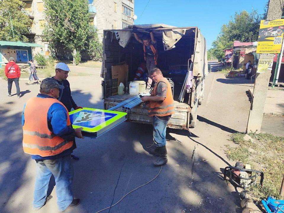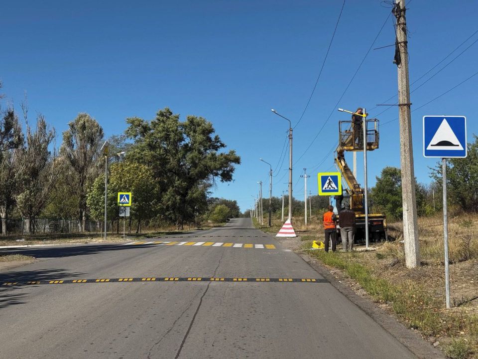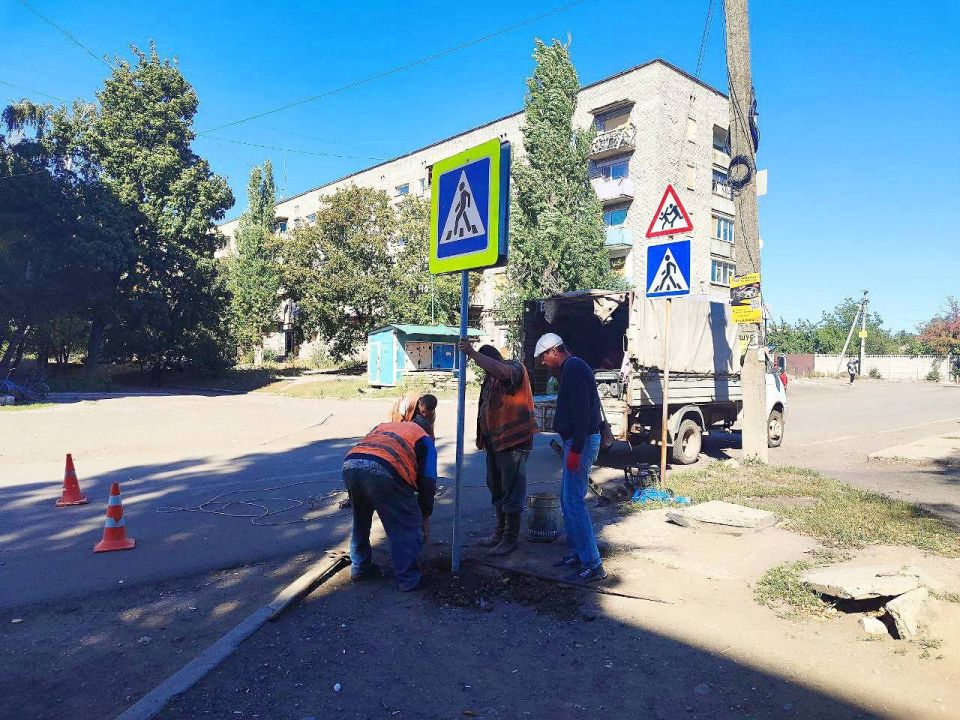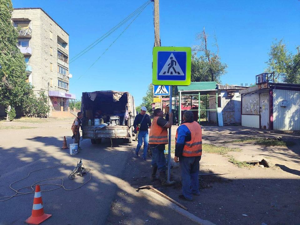 Параллельно с этим дорожники предприятия приступили к установке дорожных знаков, оповещающих о приближении к пешеходному переходу в районе Золотовской средней школы №16 на квартале Солнечном.