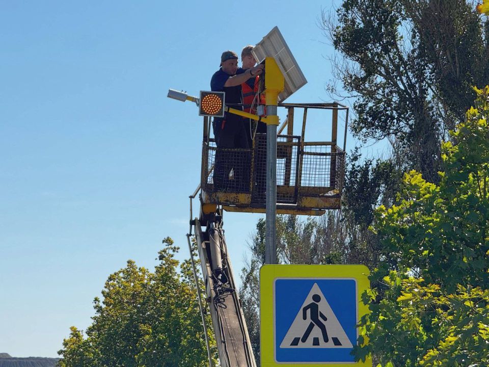 Отмечу, в состав комплектов входят и светодиодные светильники, которые в ночное время суток станут дополнительным источником освещения пешеходного перехода.