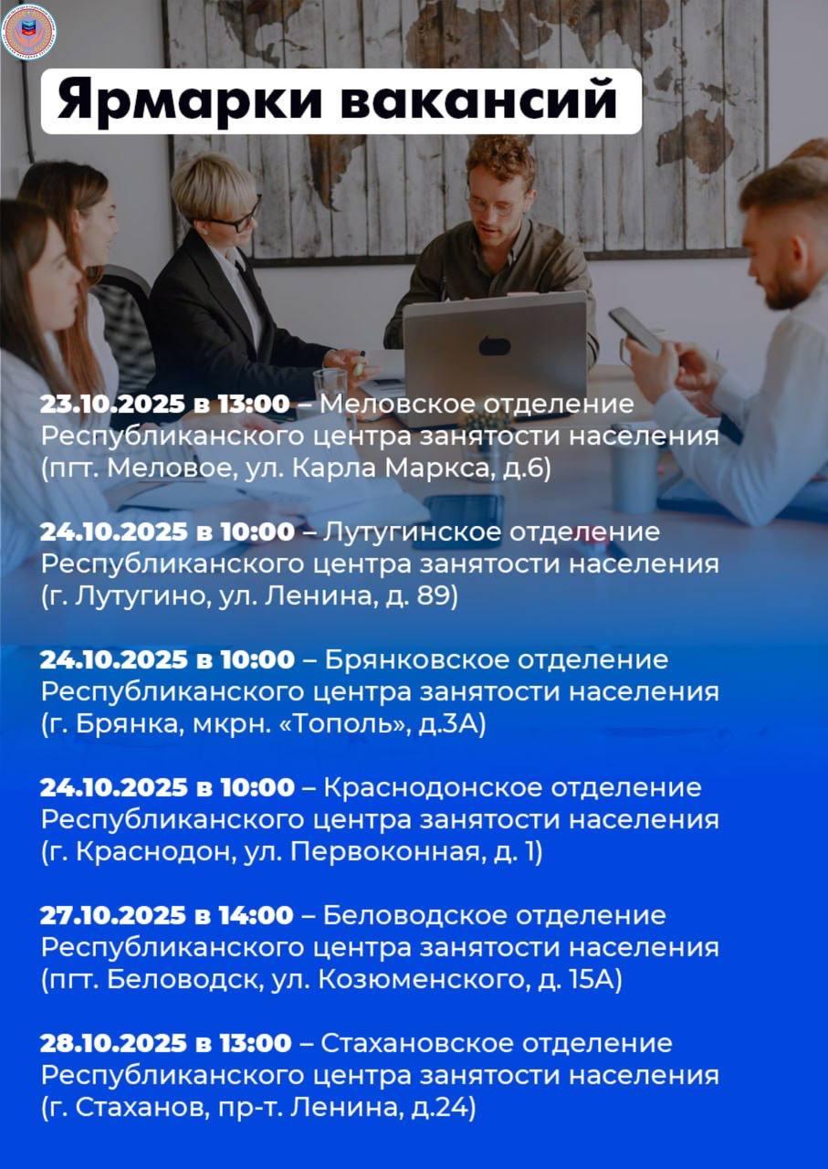 График проведения ярмарок вакансий и учебных рабочих мест на октябрь 2025 года смотрите в карточках.