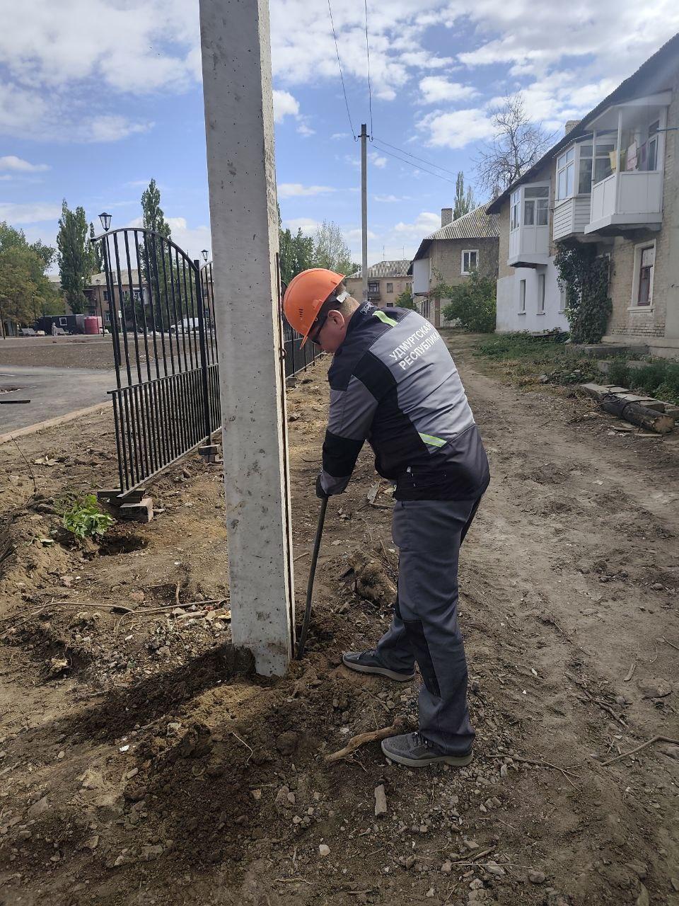 В рамках двустороннего соглашения о сотрудничестве между Удмуртской Республикой и Лутугинским округом в новом парке Лутугино, который расположен по улице Крупской, специалисты Удмуртии заменили аварийные опоры воздушной линии электропередачи 0,4 кВ на новые.