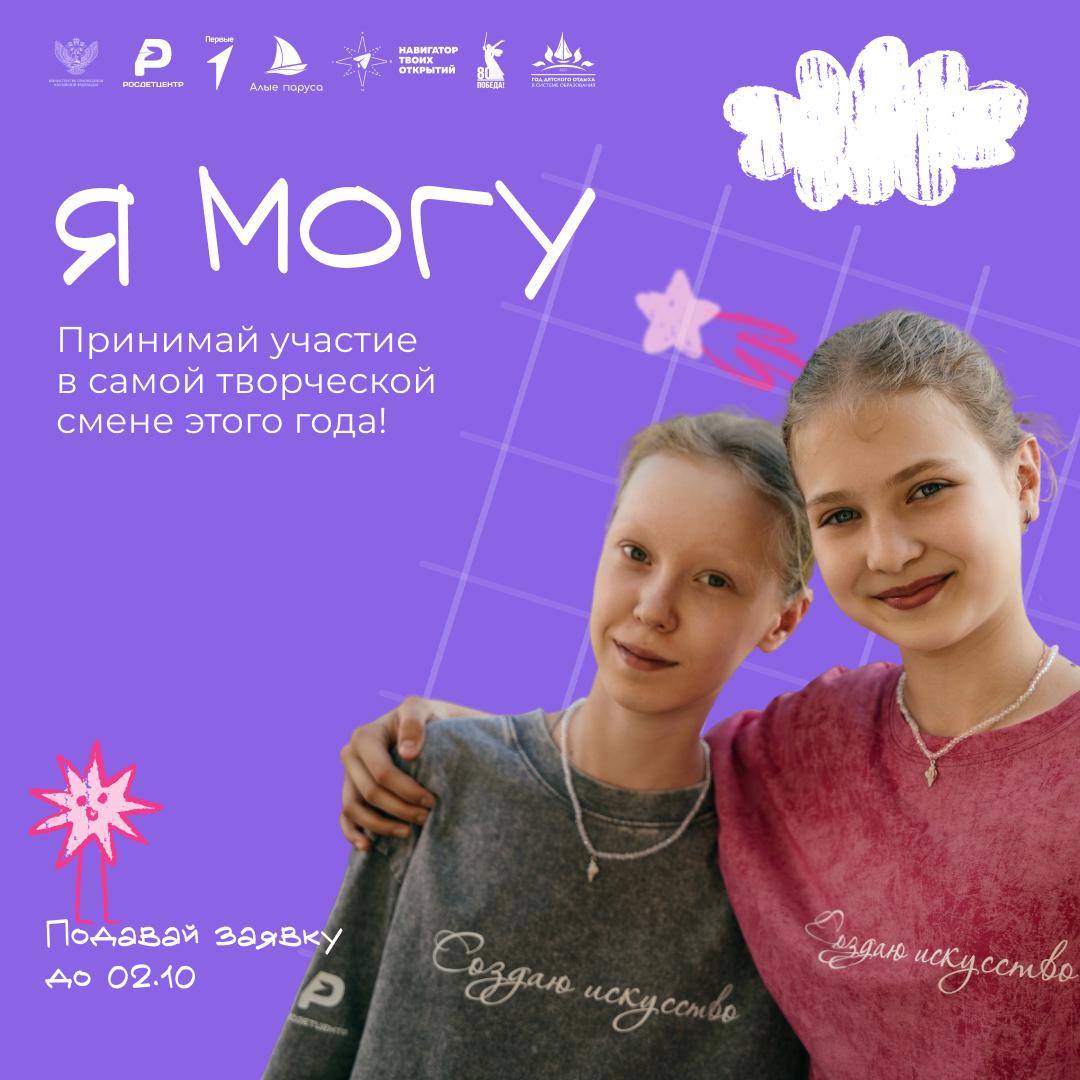 Осталось 2 дня, чтобы подать заявку на Всероссийскую смену «Я могу», которая пройдёт с 3 по 26 ноября во Всероссийском детском центре «Алые паруса». Ты сможешь попробовать себя в песнях, танцах, рисовании и даже в актёрском мастерстве!