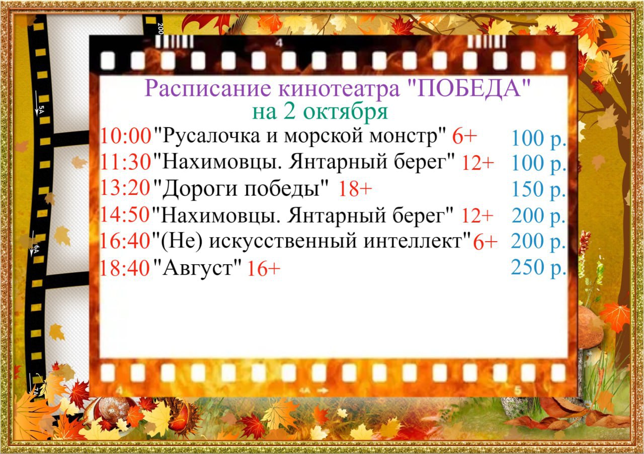 Расписание кинотеатра «ПОБЕДА» на 2 октября