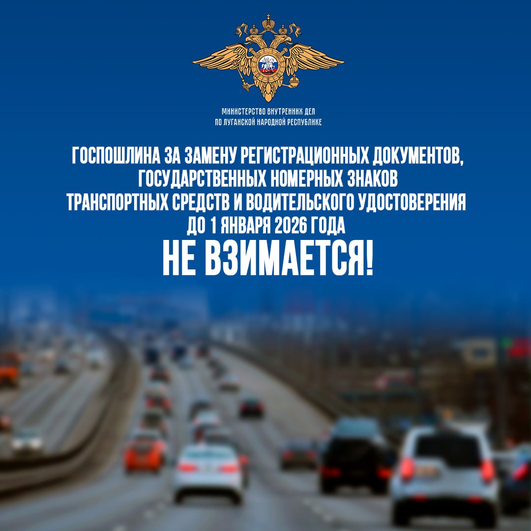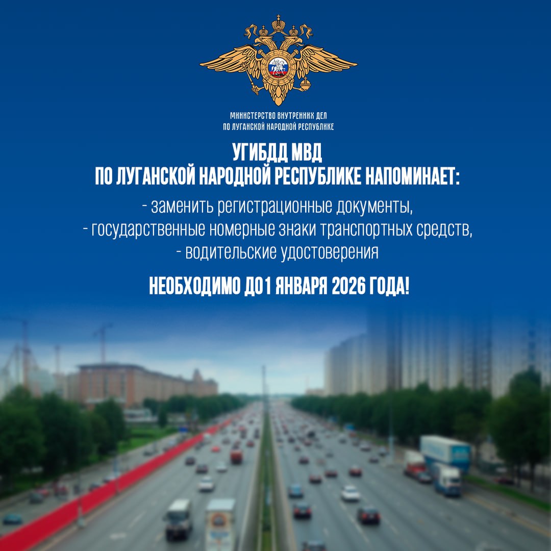УГИБДД МВД по ЛНР напоминает: до 1 января 2026 года необходимо обновить регистрационные документы, номера и водительские удостоверения.