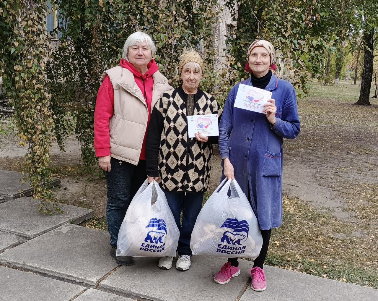 В рамках празднования Международного дня пожилых людей единороссы Славяносербщины поздравили одиноко проживающих людей старшего поколения и работников филиала «Славяносербский техникум» ЛГАУ с праздником и от местного отделения партии «Единая Россия» и Центра помощи вручили им продуктовые наборы и одежду.