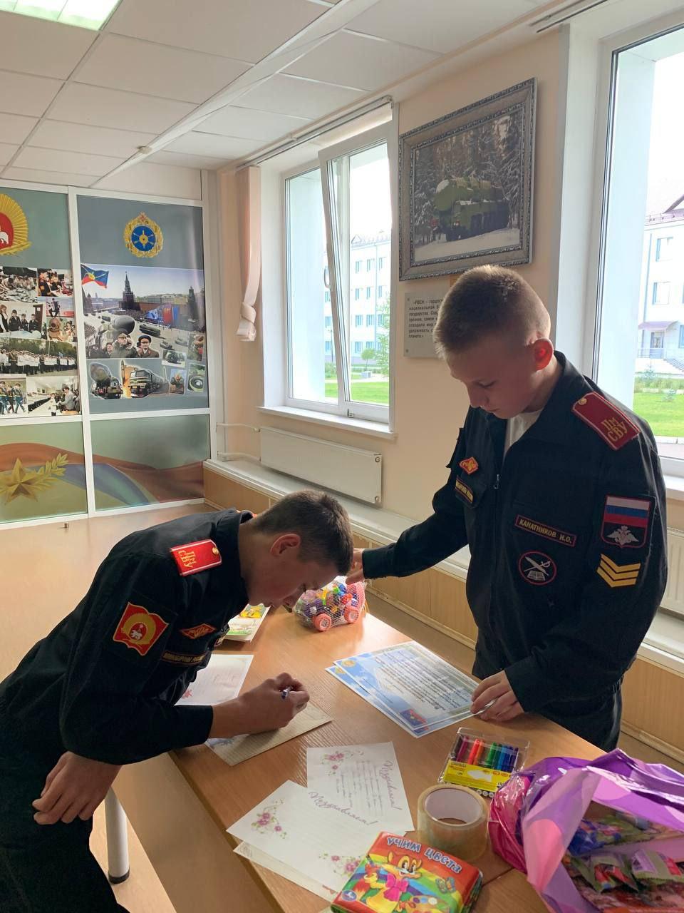 Воспитанники 4 роты Пермского суворовского военного училища приняли участие в социальном проекте «Доброе сердце - добрые дела!». Вместе с педагогами и родителями они собрали и отправили в Северодонецк для дошколят посылки с канцтоварами, книгами, методическими материалами для педагогов.