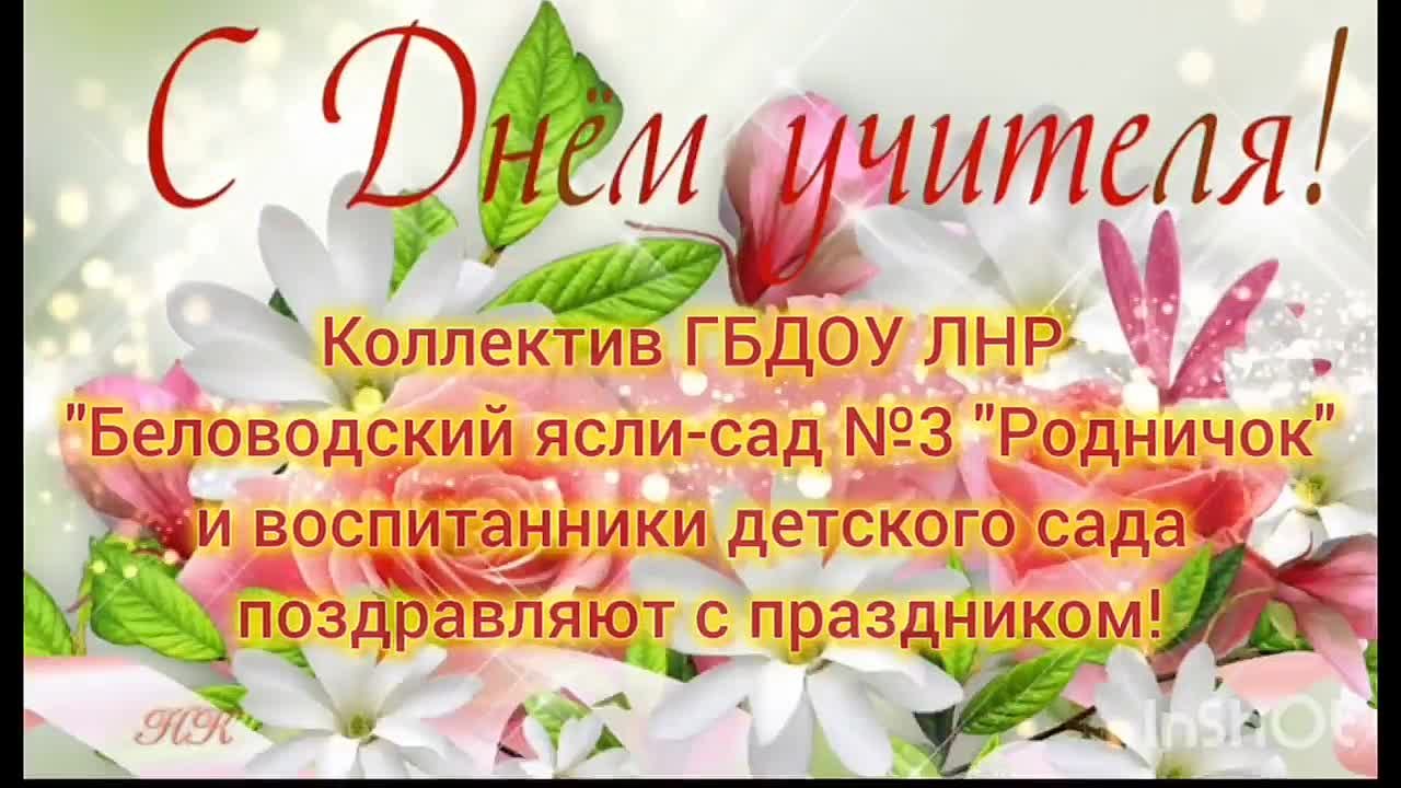 Дорогие учителя, коллектив ГБДОУ ЛНР "Беловодский ясли-сад №3 "Родничок" и воспитанники детского сада, от всей души поздравляют вас с праздником — Днем учителя.
