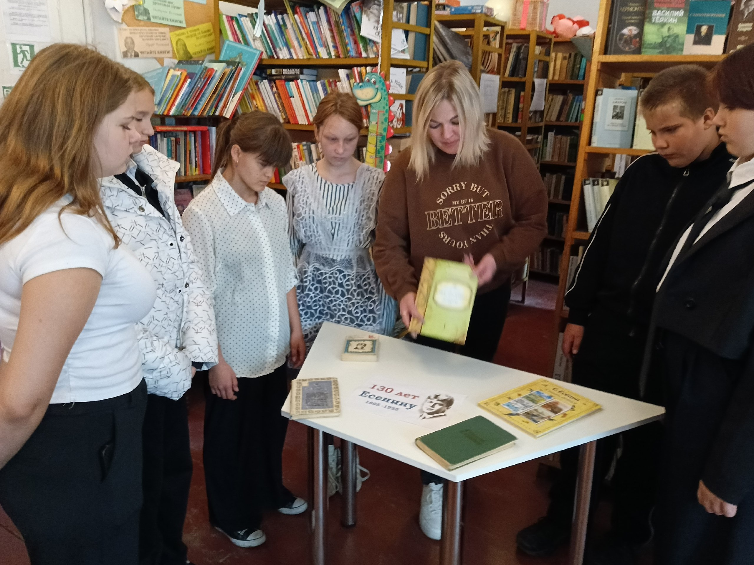 В библиотеке-филиале №14 пгт. Ясеновский состоялось юбилейное литературное мероприятие, где учащиеся 8 класса Ясеновской школы им. Д.В. Лазутина смогли погрузиться в мир Есенина. Для них была подготовлена обзорная презентация, раскрывающая основные вехи жизни и творчества поэта.
