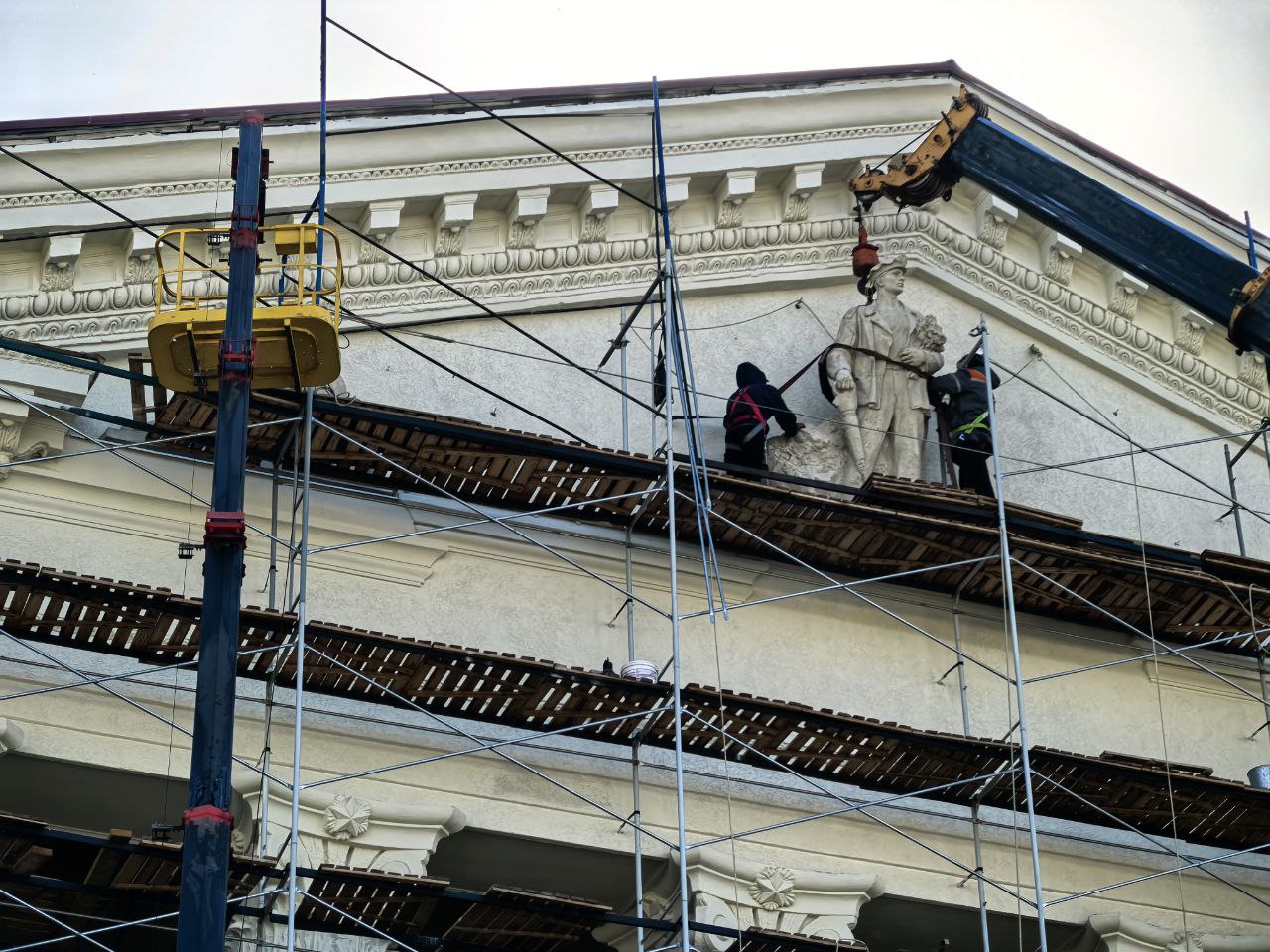 На сегодняшний день специалисты подрядной организации ООО «Артстрой» (шефрегион — Тюменская область) приступили к монтажу декоративных элементов барельефа, которые станут центральным архитектурным акцентом обновленного фасада. Каждый элемент изготавливался с особым вниманием к историческим деталям, чтобы сохранить уникальный облик здания, хорошо знакомый нескольким поколениям краснодонцев.