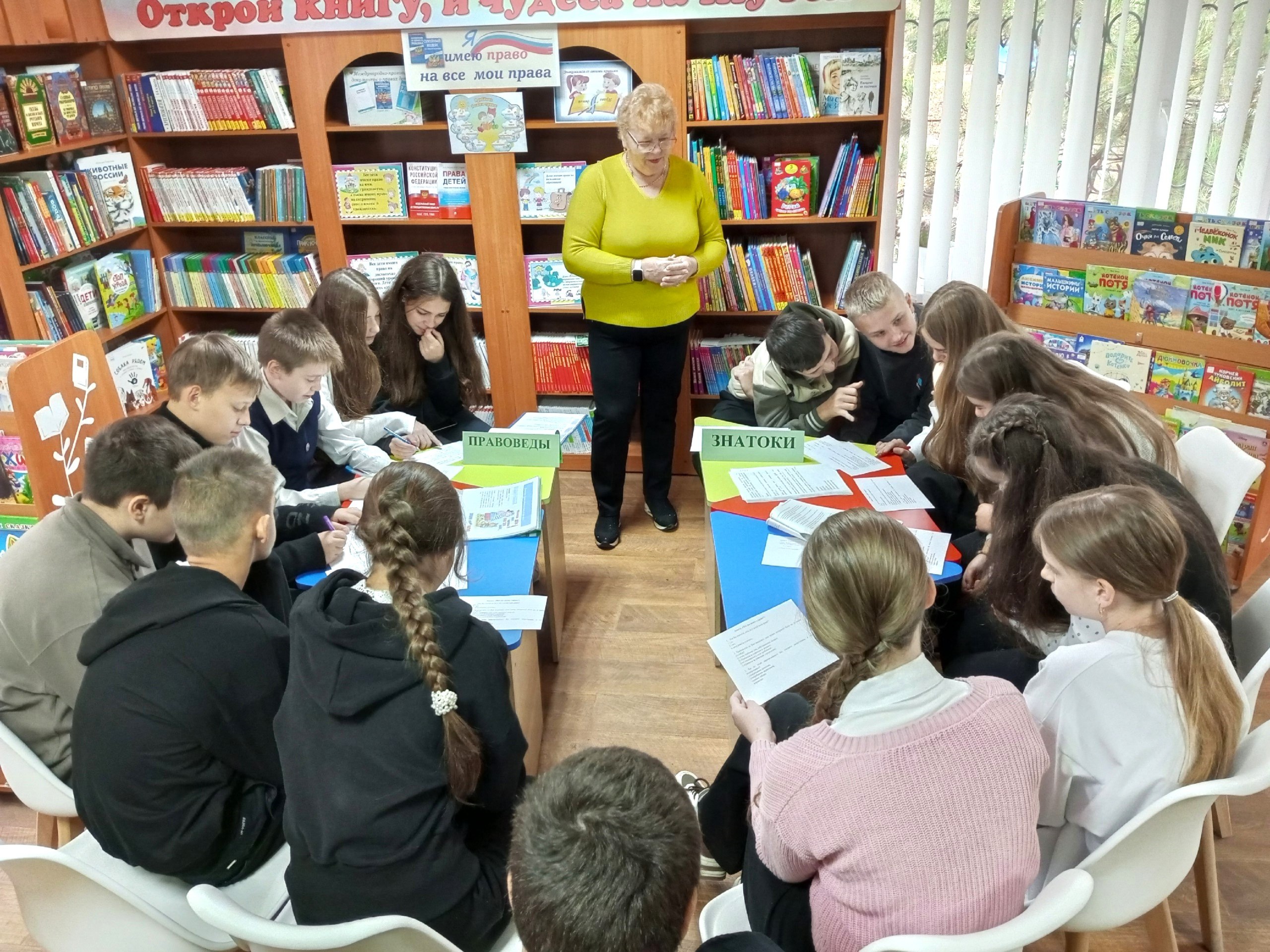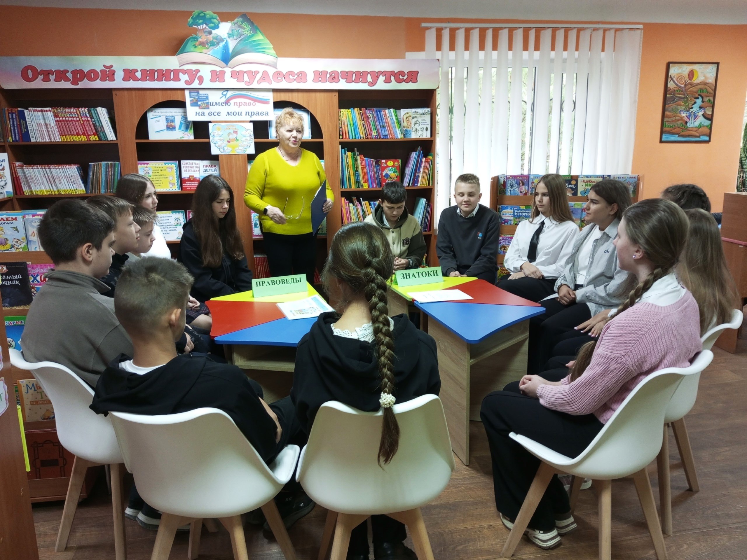 С целью формирования правовой грамотности и гражданской ответственности у детей, библиотекари центральной библиотеки пригласили обучающихся 7-а класса ГБОУ ЛНР «Брянковская специализированная школа №23» принять участие в правовой игре «По лабиринтам права».