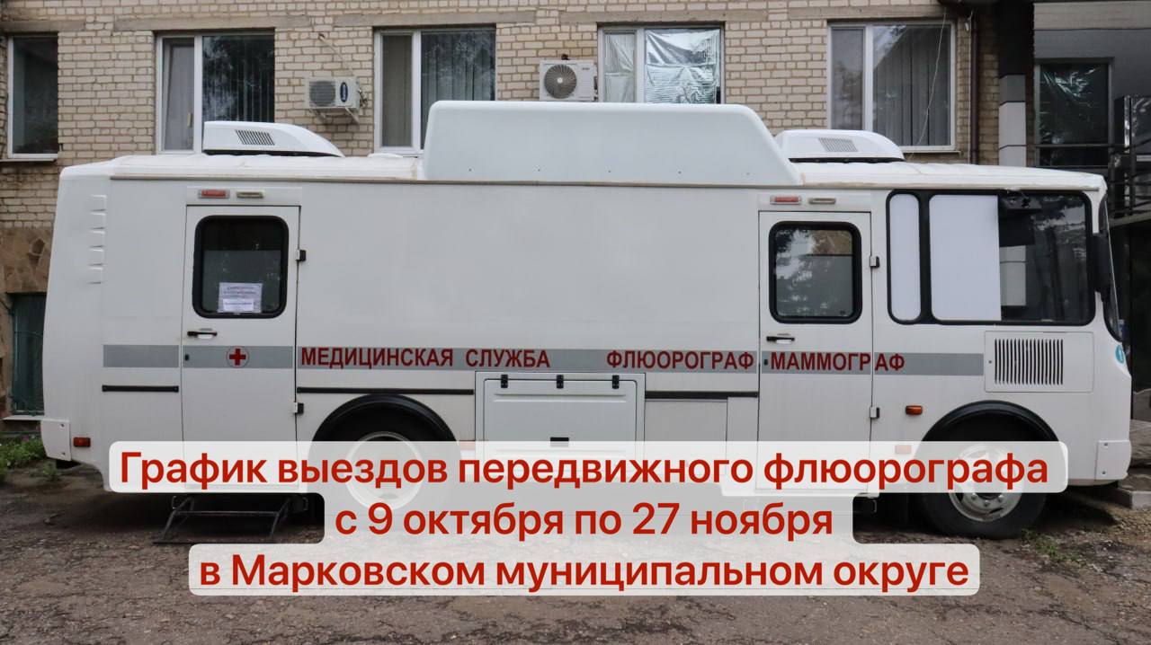 С заботой о здоровье жителей, в Марковском муниципальном округе с 9 октября по 27 ноября 2025 года будет работать передвижной флюорограф. Это отличная возможность пройти важное обследование близко к дому и бесплатно!
