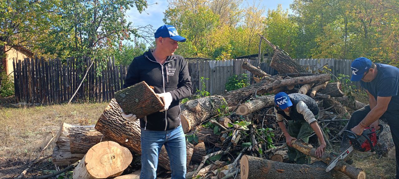 В поселке Новосемейкино для фельдшерско-акушерского пункта активисты партии доставили 20 кубометров бревен, которые затем распилили на дрова.