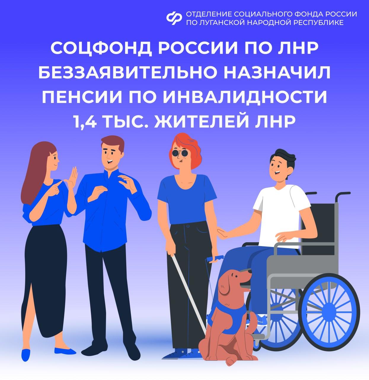 С 2024 года Отделение Социального фонда России по ЛНР назначило беззаявительно 1484 пенсии по инвалидности, из них: 767 страховых и 717 социальных. Все выплаты оформлены без подачи заявления на основе сведений, поступающих из Федерального реестра инвалидов.