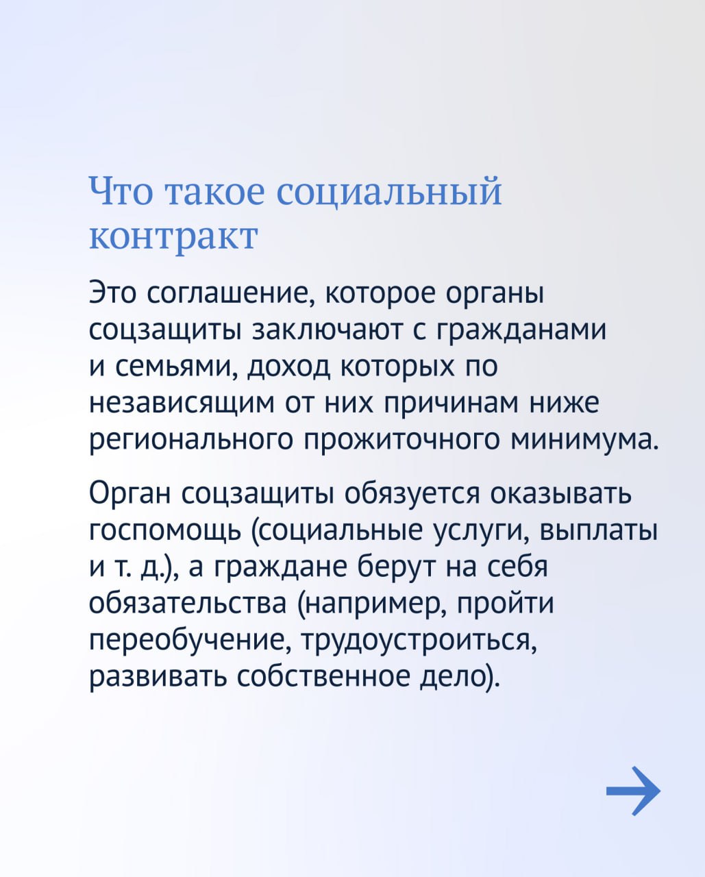 При этом и государство, и человек, который получает помощь, берут на себя определенные обязательства.