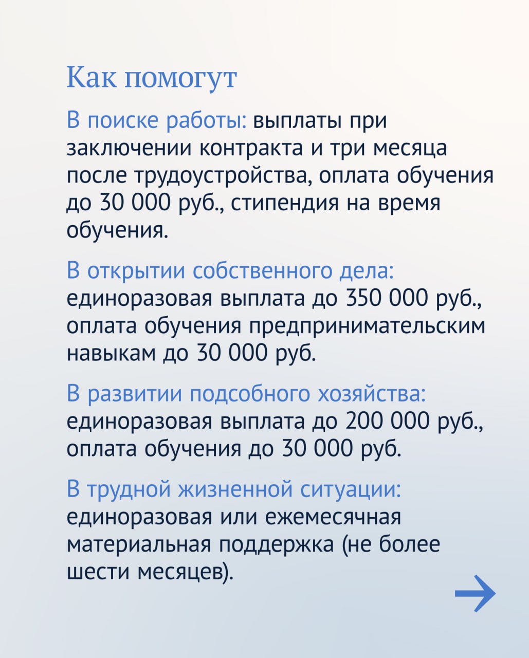 Выплаты в рамках соцконтракта