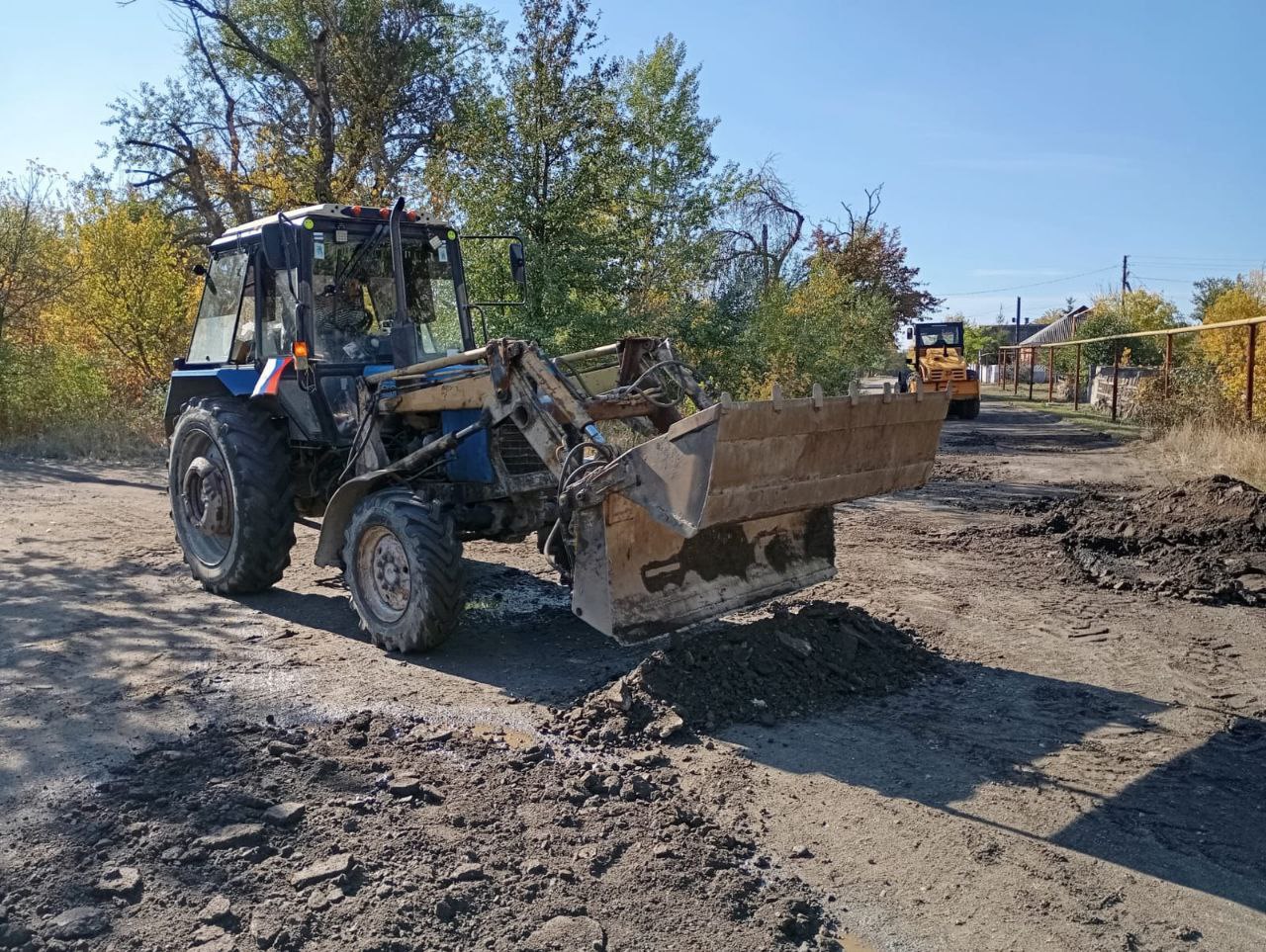 Сегодня работники дорожной службы провели работы на улице Щёлокова в Алмазной. Для выравнивания проезжей части выполнена отсыпка дороги асфальтным околом.