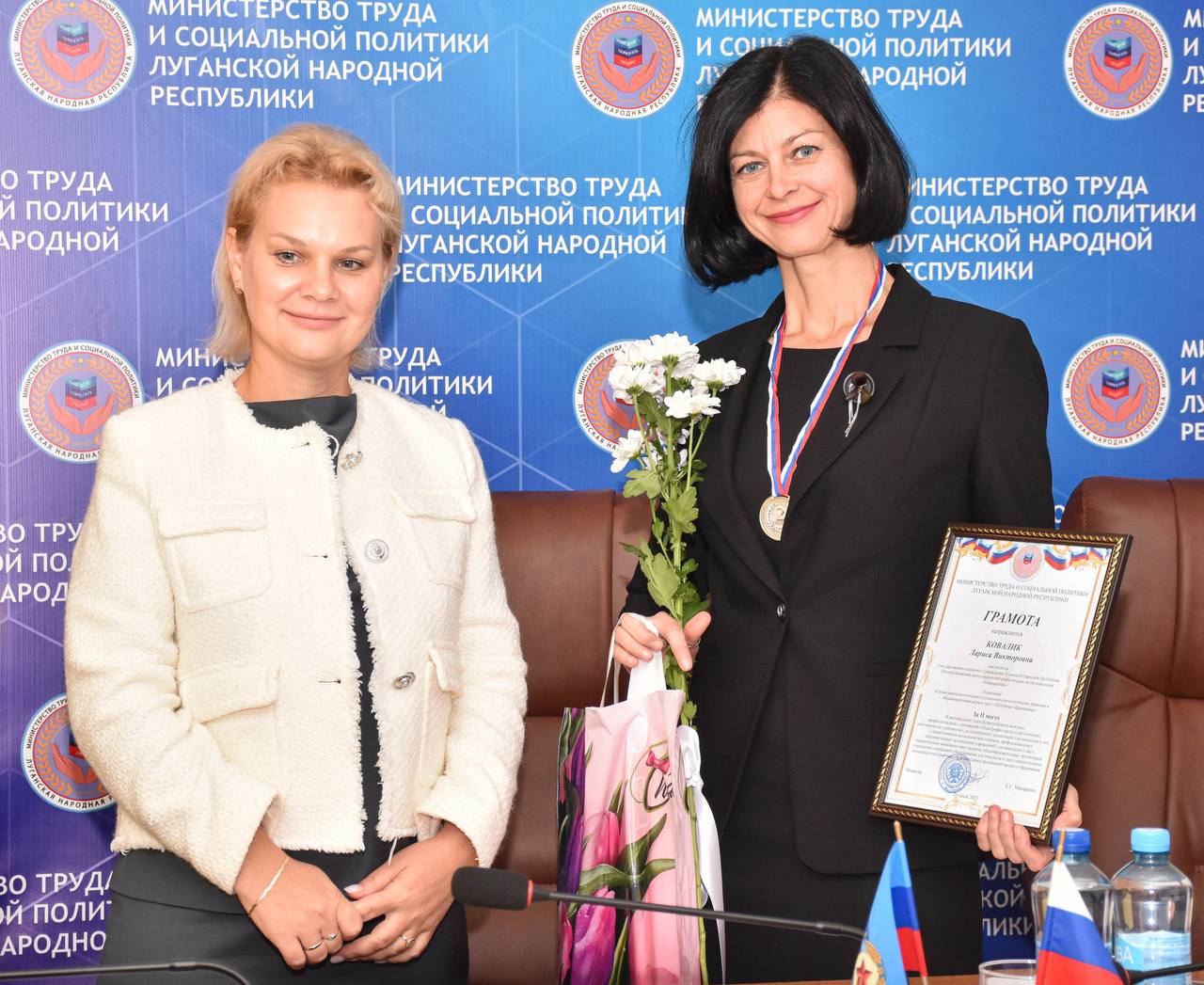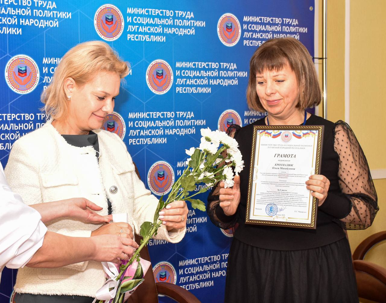 В номинации «Педагог-предметник в профессиональном образовании и профессиональном обучении инвалидов и лиц с ОВЗ» преподаватель Луганского техникум-интерната Ирина Георгиевна Кравченко.