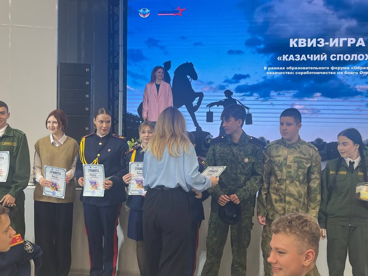 Кадеты 8-А и 7-А классов «Станично-Луганской средней школы имени Грекова П.М.» приняли участие в образовательном форуме «Образование и казачество: соработничество на благо Отечества», в Республиканском центре воспитания и развития дополнительного образования «Пионер» прошла квиз-игра «Казачий сполох».
