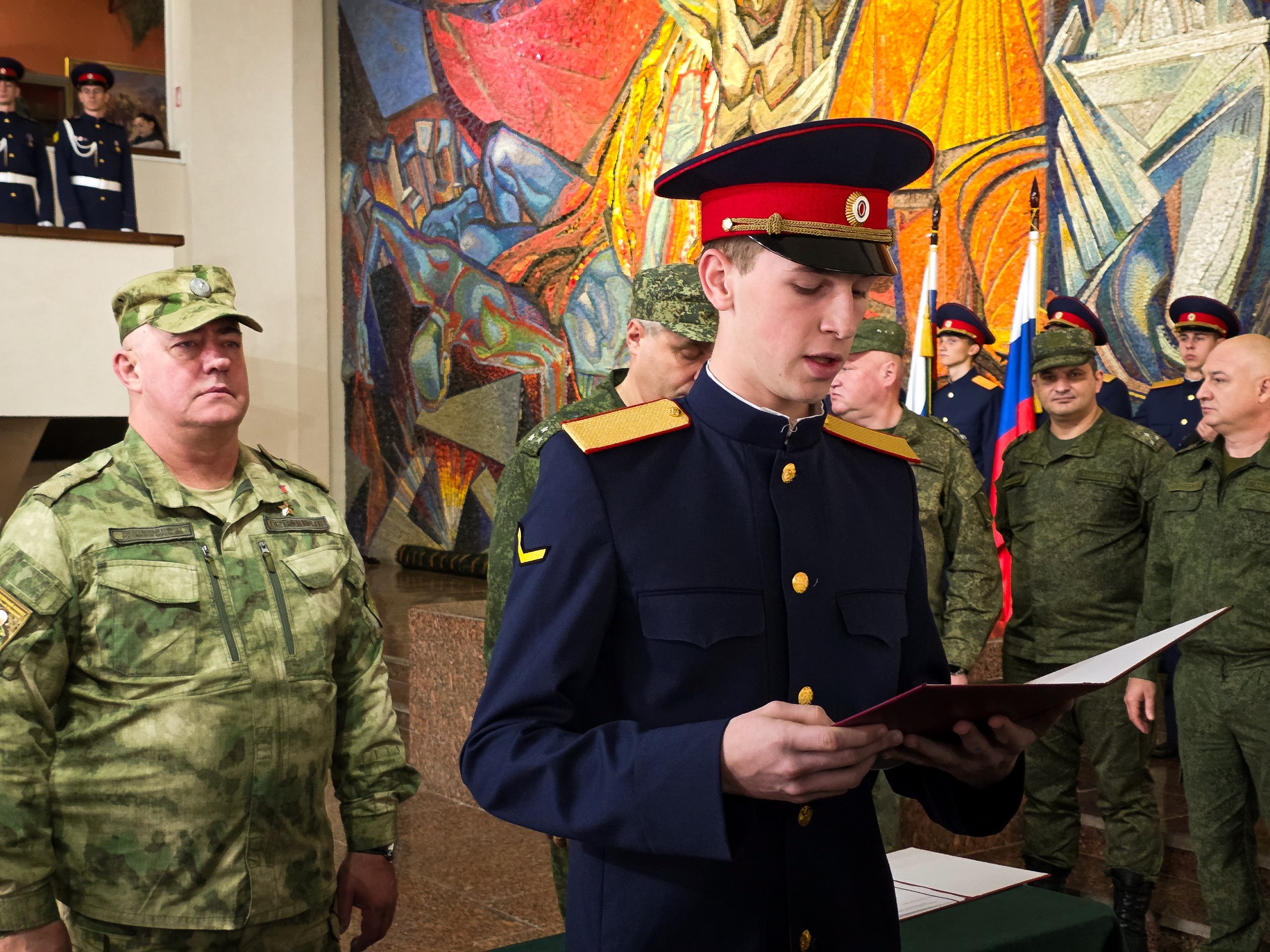 В зале Славы Краснодонского ордена Дружбы народов музея «Молодая гвардия» в ЛНР состоялась церемония принятия Торжественной клятвы курсантами Луганской академии Следственного комитета и кадетами Луганского кадетского корпуса ведомства. Мероприятие возглавил руководитель управления общественно-политической работы СК России Герой России С.В. Петров.