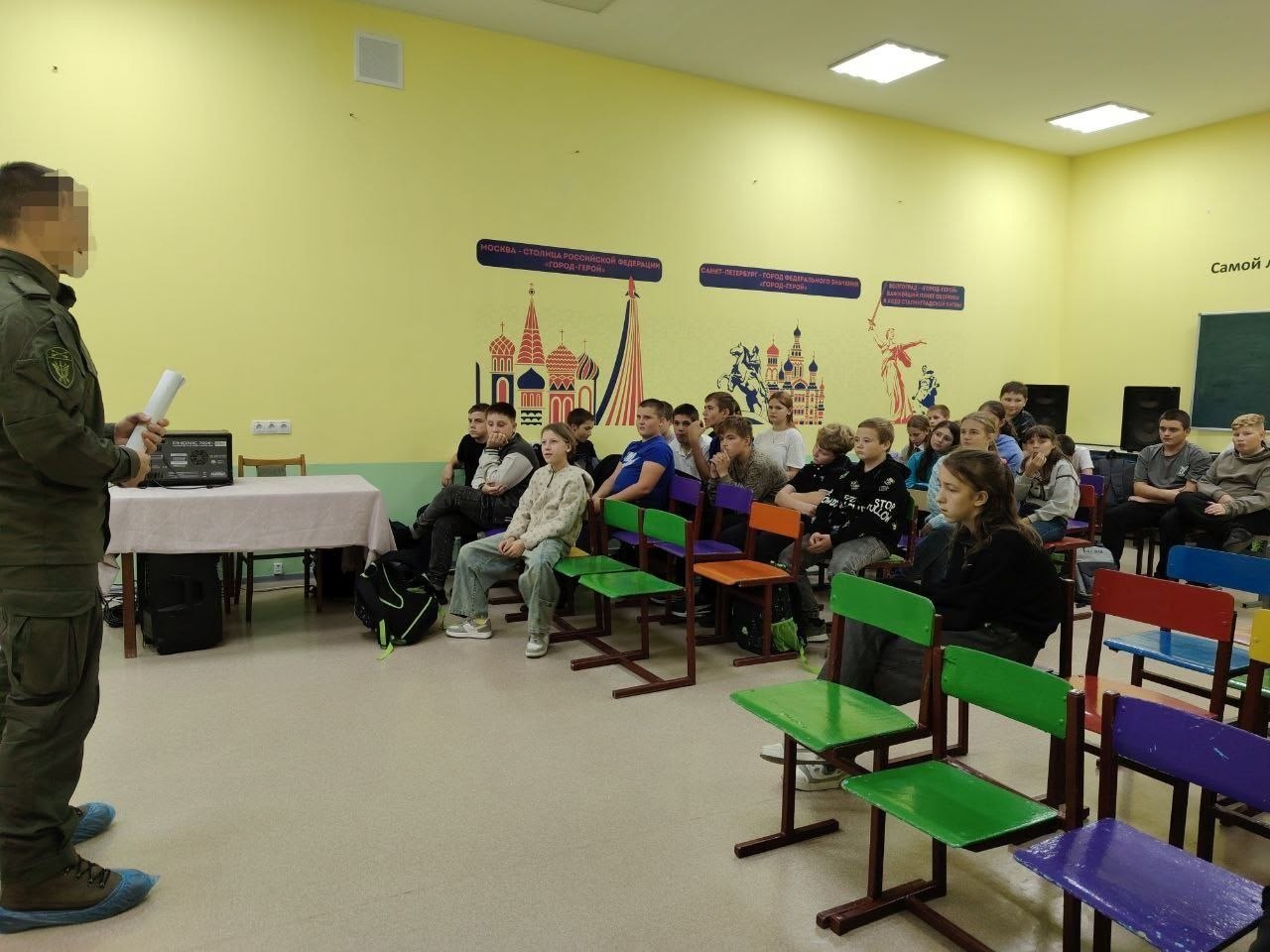 Сотрудники Росгвардии провели занятие для учеников 5-11 классов Евсугского учебно-воспитательного комплекса на тему «Терроризм и экстремизм — зло для человека».