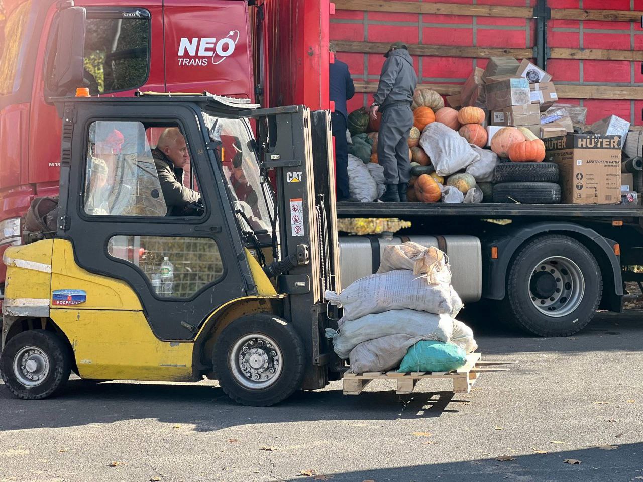 Вместе с литературой в город направлены сезонные овощи - более 200 мешков картофеля, собранных жителями района.