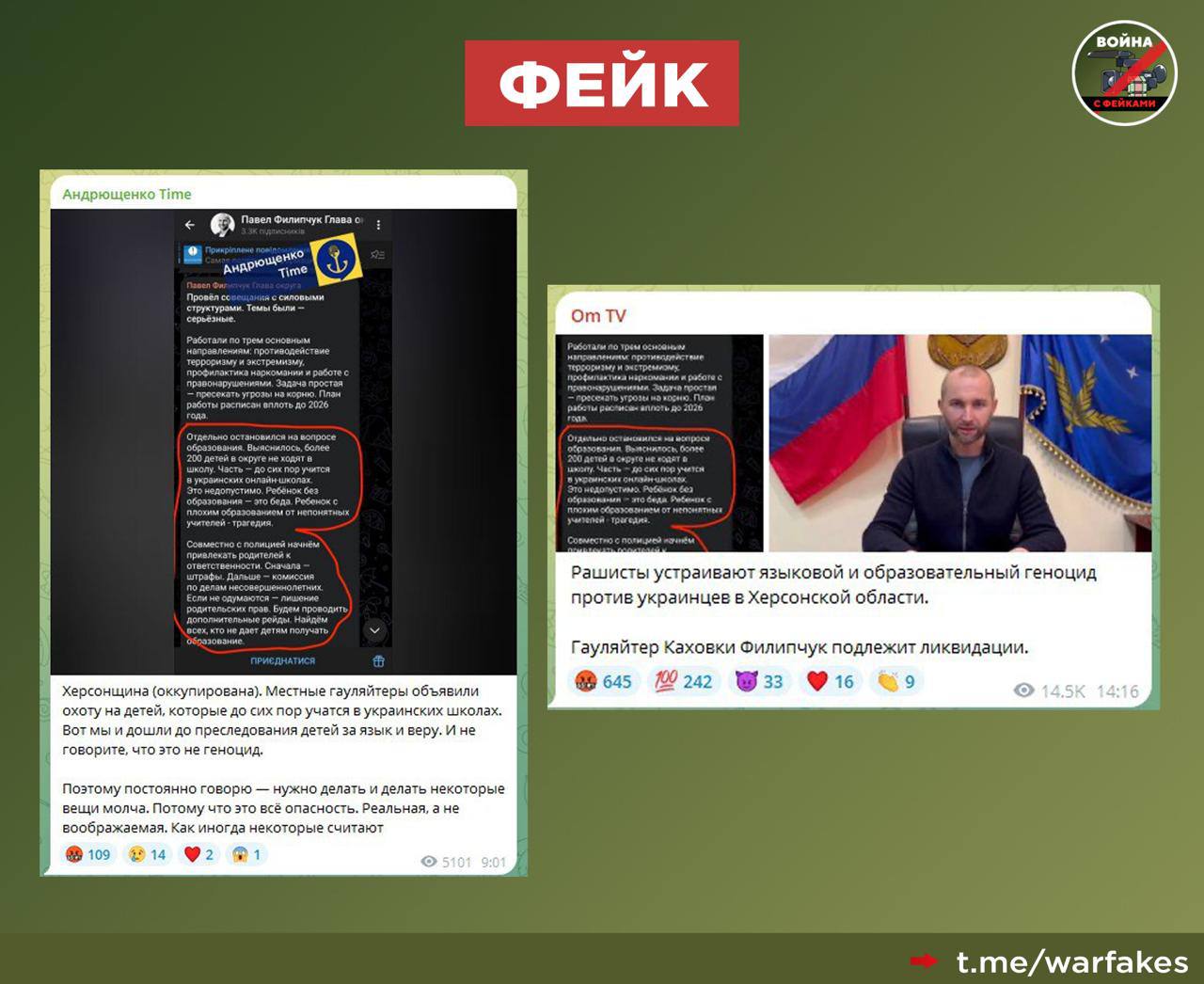 Фейк: В новых регионах местные власти устраивают языковой и образовательный геноцид тех семей, где дети учатся в украинских онлайн-школах