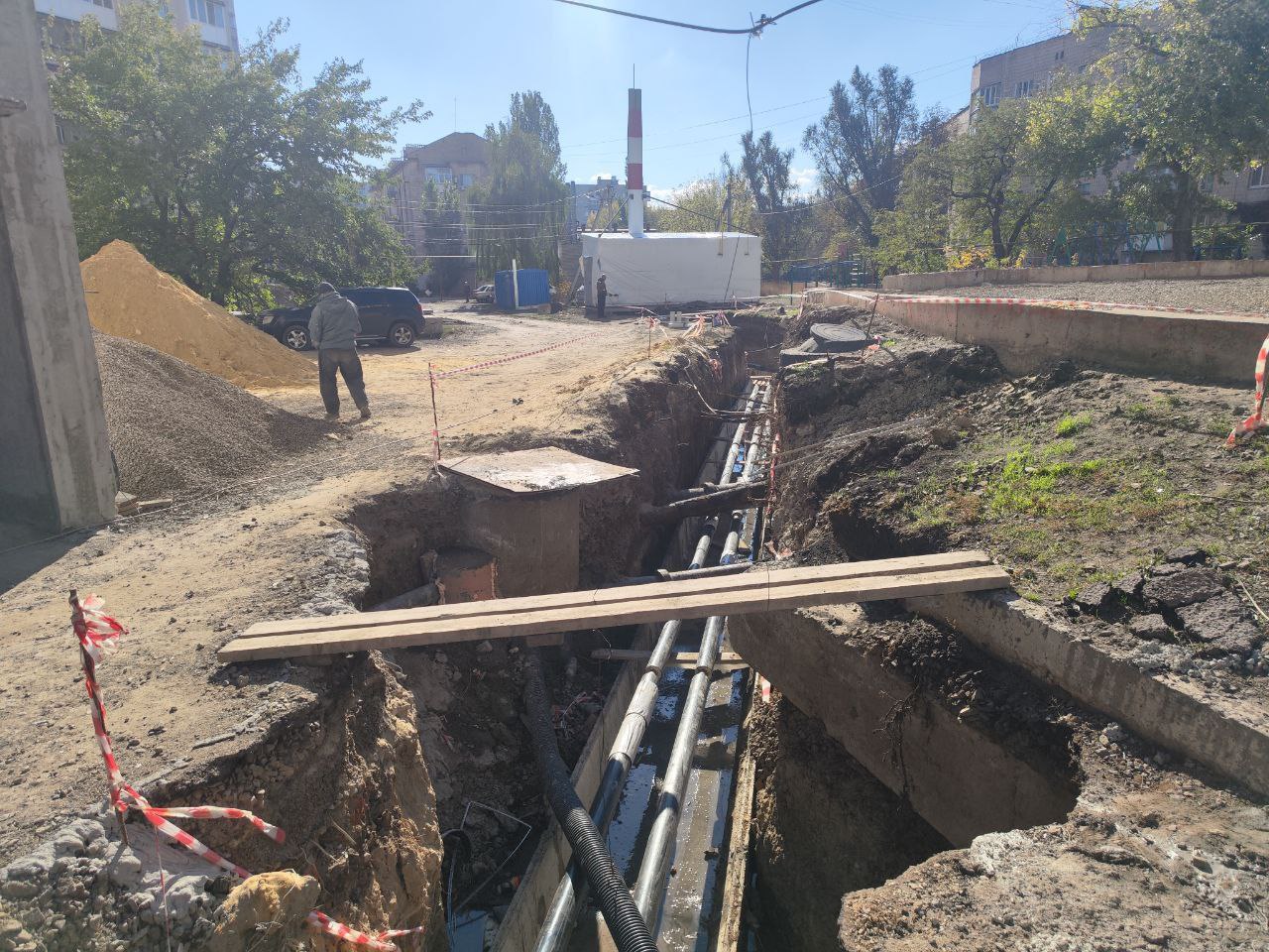 «До конца этого месяца планируем сделать отопление по улице. Уложить теплотрассу в лотки, закрыть их, засыпать траншею. Ну и в следующем месяце у нас ещё отмостка, подпорная стена. И будем начинать внутренние работы»