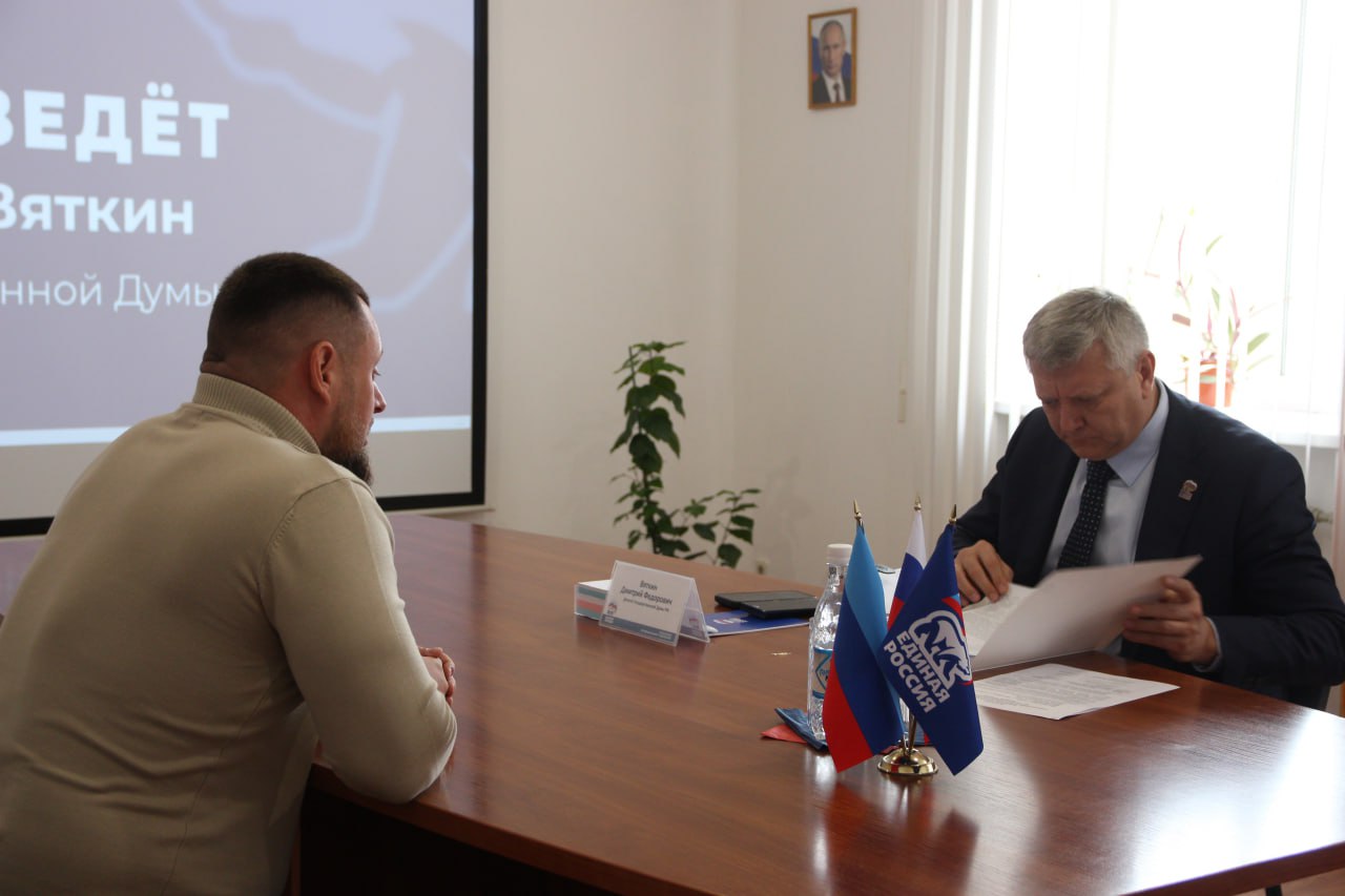 Депутат Государственной Думы РФ Дмитрий Вяткин провел прием граждан по вопросам совершенствования законодательства в Региональной общественной приёмной Председателя партии «Единая Россия» Д.А. Медведева в ЛНР.