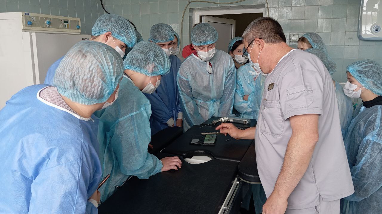 Ребята смогли заглянуть в операционный блок отделения травматологии и ортопедии, где увидели спецоборудование, пообщались с заведующим отделением Юрием Ковалевым и узнали об особенностях работы хирурга-травматолога.