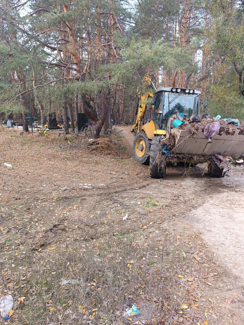 Совместными усилиями МБУ «Ритуальная служба» и МБУ «Благоустройство» завершена работа по вывозу мусора с территории кладбища в селе Чмыровка.