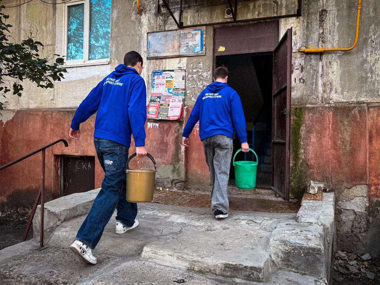 За время работы подвоза воды ребята на специально выделенных транспортных средствах доставляют воду прямо в квартиру.