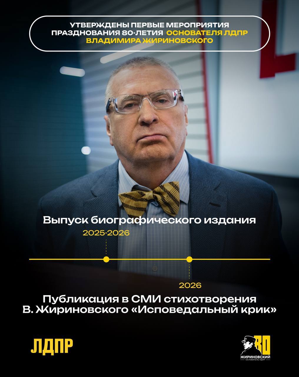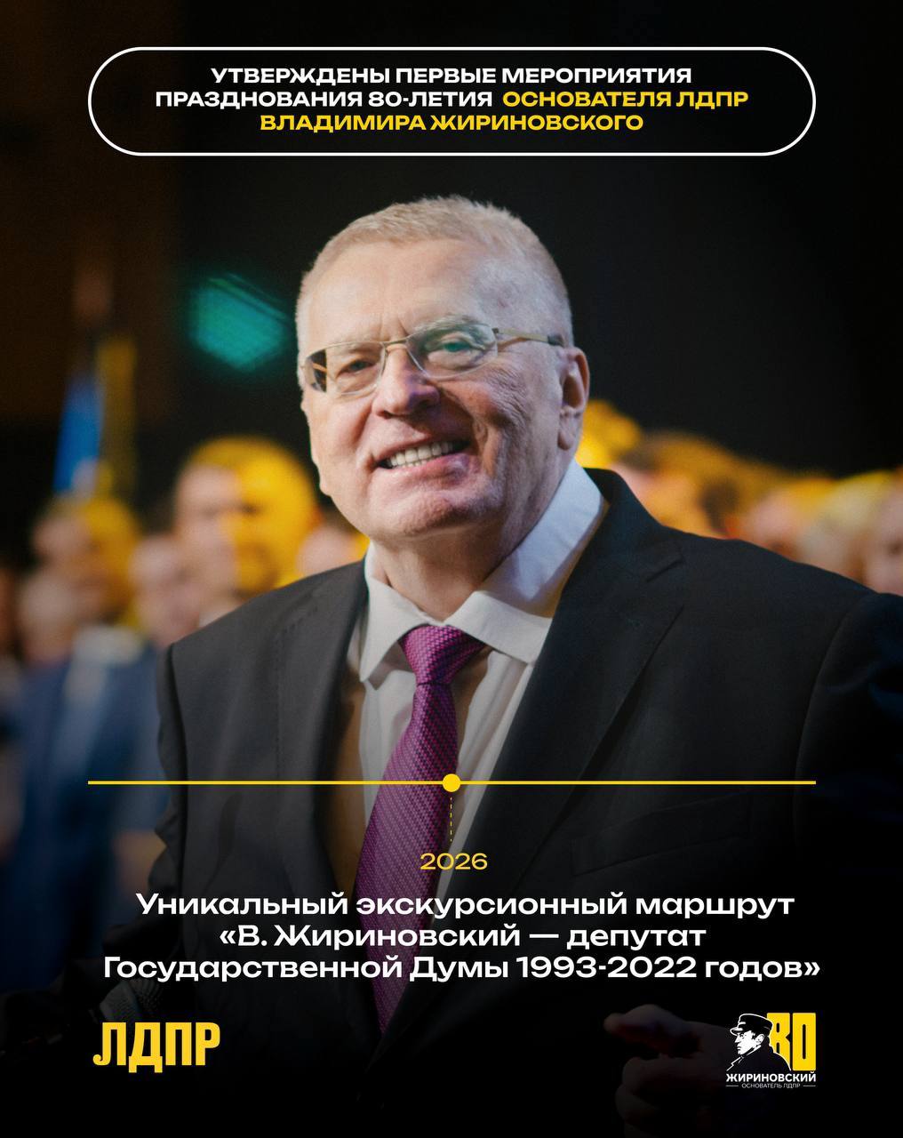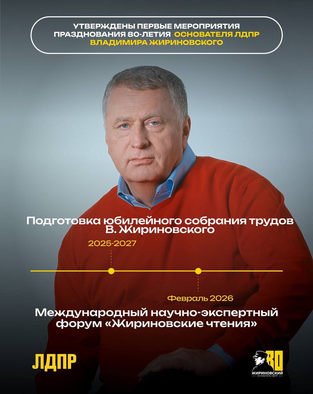 ЛДПР уже приступила к масштабной подготовке празднования 80-летия со дня рождения Основателя Партии — Владимира Вольфовича Жириновского, которое состоится в 2026 году.