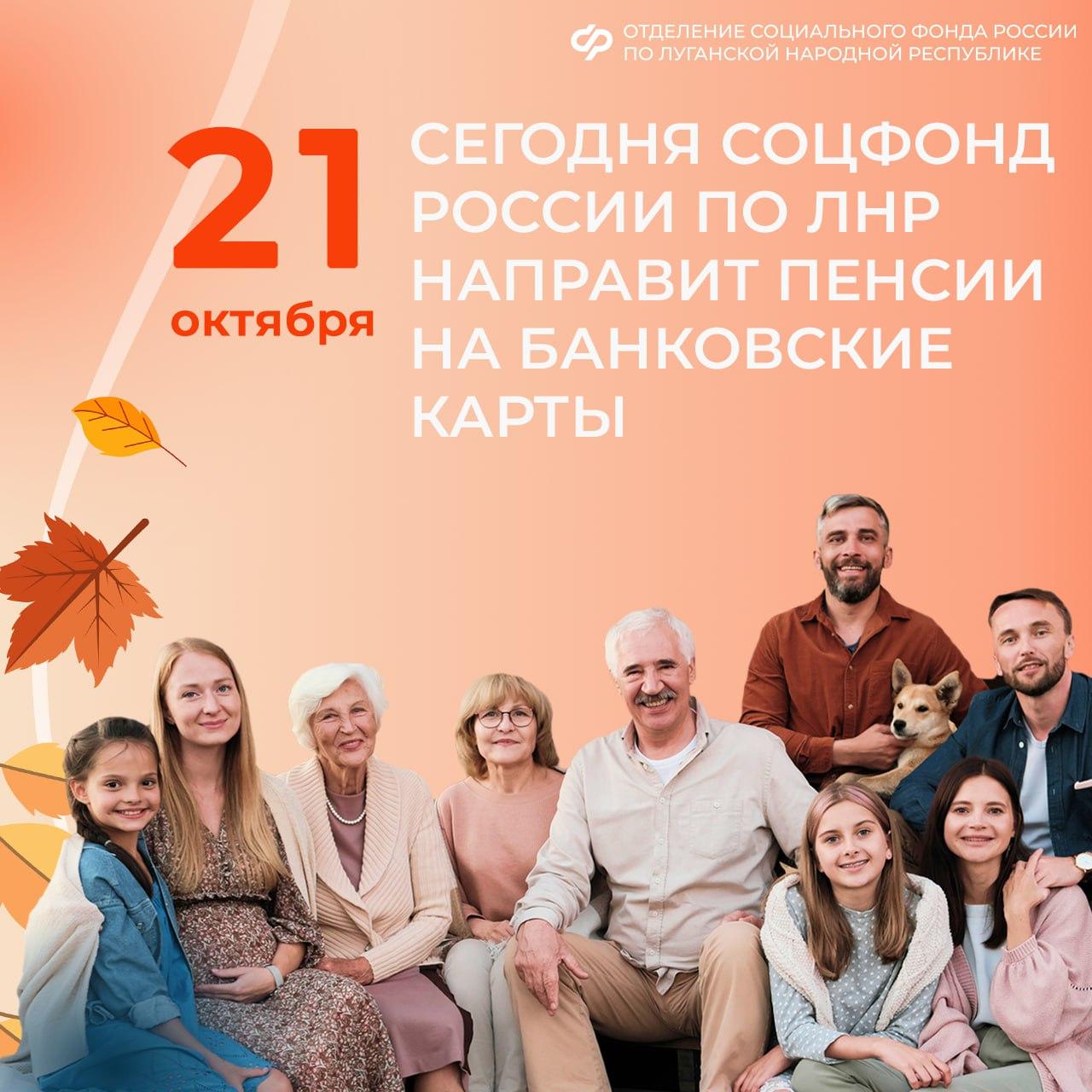Сегодня Отделение Социального фонда России по ЛНР направит пенсии за октябрь, выплачиваемые через банковские организации, получателям, проживающим в городских и муниципальных округах Луганской Народной Республики: