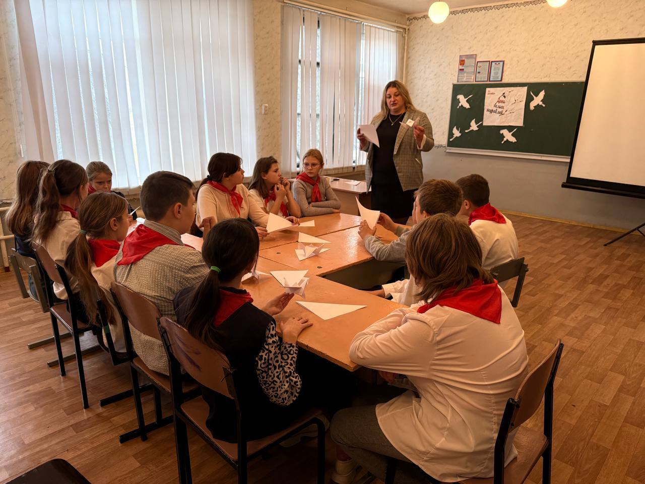 В ходе мероприятия ребята узнали историю возникновения праздника, о японской девочке Садако, ставшей одной из жертв атомного взрыва в Хиросиме, и почему именно эти птицы стали символом памяти. Ребята прослушали песню «Журавли» в исполнении Марка Бернеса.