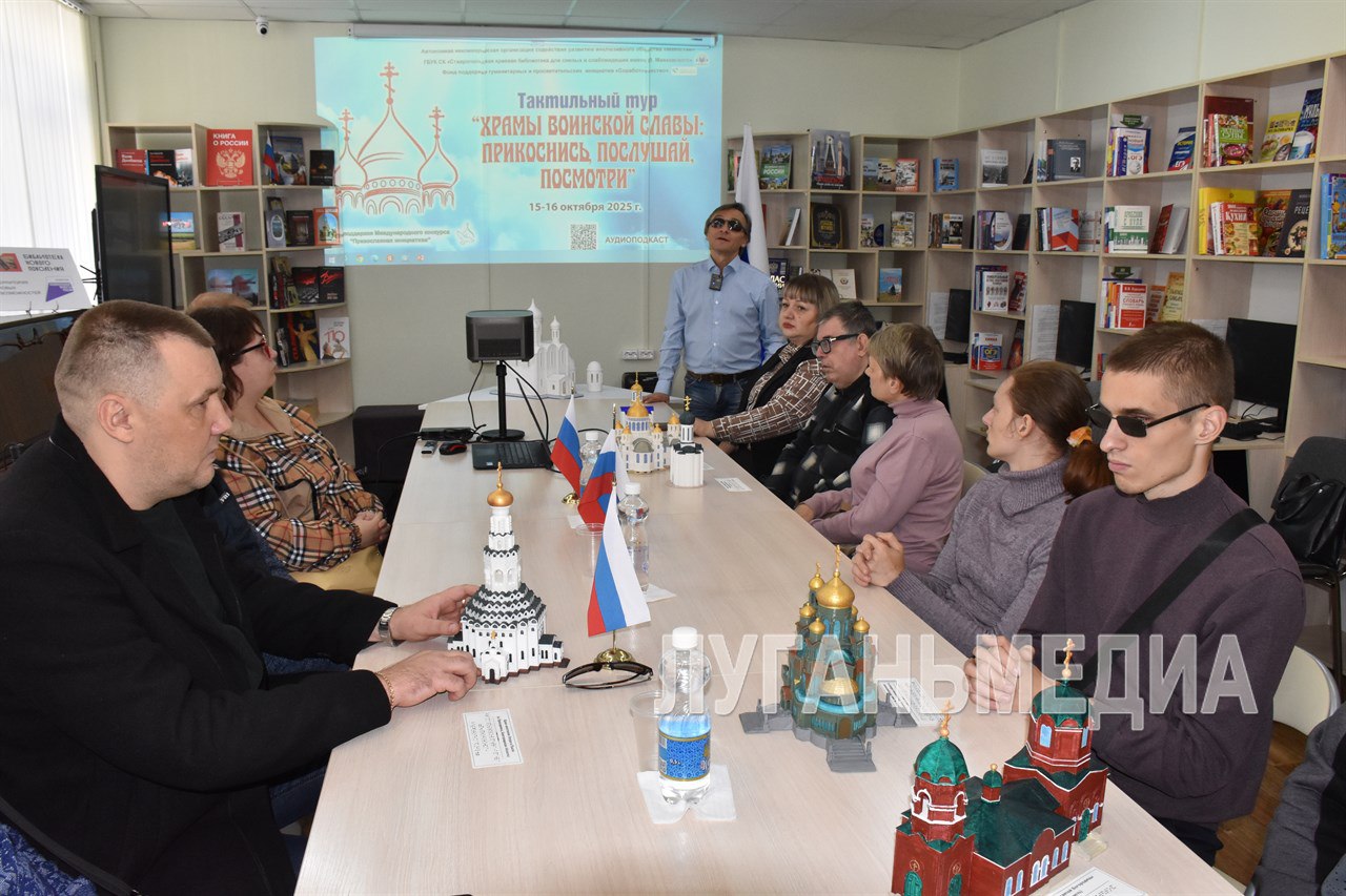 Екатерина Захарова, директор Ставропольской краевой библиотеки для слепых и слабовидящих им. В. Маяковского отметила, что в экспозиции представлены шесть храмов воинской славы, стоящих на местах Бородинского сражения, Куликовской битвы, отражающих историю Ленинграда во времена блокады, и другие, начиная с XVII века до событий Великой Отечественной войны. Уменьшенные копии сделаны в 3D-мастерской краевой библиотеки.