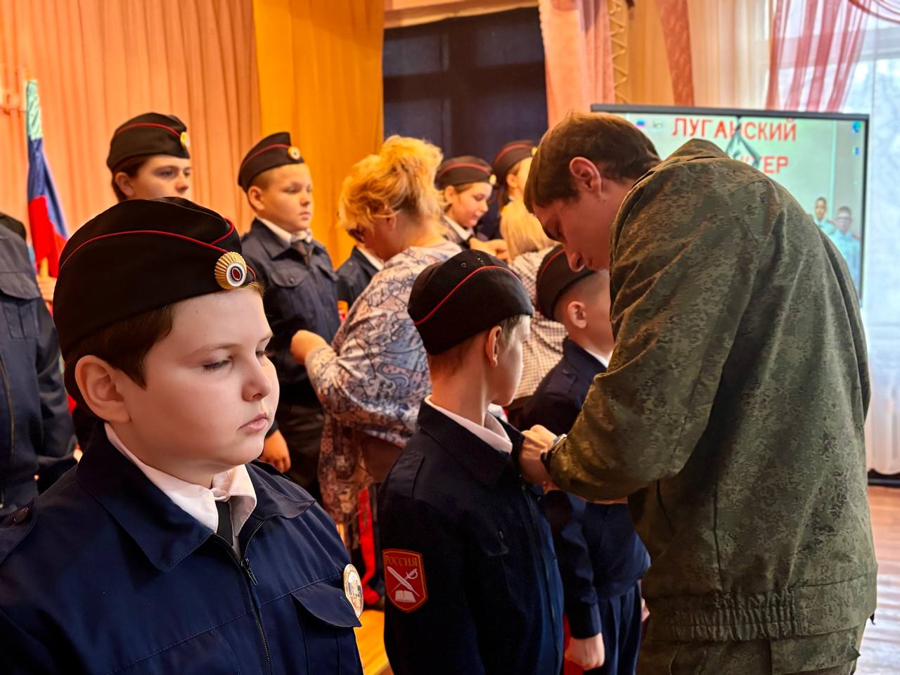 Со знаменательным событием ребят поздравили начальник Следственного комитета по городам Ровеньки, Антрацит, Красный Луч СК России по ЛНР Вячеслав Спивак, начальник управления образования Краснолучского округа Кристина Прочухан, а также директор школы Ирина Никифорова. Они вручили кадетам знаки отличия и пожелали успехов во всех начинаниях. Кроме того, от управления образования округа Кристина Валерьевна преподнесла ребятам подарки.